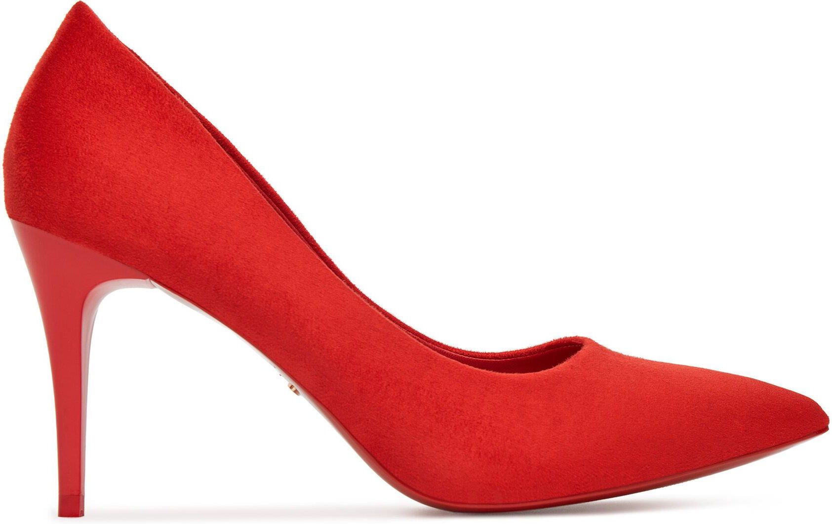 Czółenka damskie marki DeeZee w czerwonym kolorze to idealny wybór dla kobiet, które pragną dodać swoim stylizacjom odrobinę zmysłowości i elegancji. Wykonane z wysokogatunkowego tworzywa syntetycznego, zapewniają trwałość i komfort użytkowania. Szpilka dodaje kilku centymetrów wzrostu, wysmuklając sylwetkę i dodając pewności siebie, natomiast szpiczasty nosek nadaje butom wyjątkowy, klasyczny charakter. Te czółenka to doskonała propozycja na wszelkie wyjątkowe okazje, kiedy chcesz wyglądać olśniewająco i czuć się pewnie. DeeZee to wyjątkowa kobieca marka, w której znajdują się tysiące produktów skomponowanych z myślą o kobietach. Działająca od 2004 roku marka nieustannie proponuje eleganckie, zmysłowe i efektowne buty na każdą okazję. W ofercie znajdziemy oryginalne czółenka, sandały, espadryle, klapki a także botki i półbuty. Każdy model projektowany jest z pasją i z miłości do mody! Buty marki DeeZee zachwycają lekkością, kolorami i niebanalnymi fasonami, które przypadną do gustu każdej dziewczynie. Kolekcję butów uzupełniają intrygujące torebki. Od rozmiaru XS do XL, wpisują się nie tylko w ponadczasową klasykę, ale też i gorące trendy. Musisz je zobaczyć!