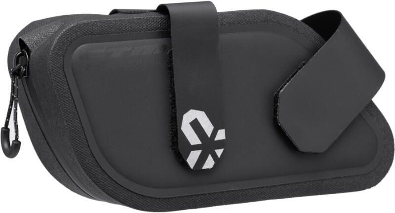 TORBA ROWEROWA POD SIODEŁKO CTM CHASER 0,8L MINIMALISTYCZNY DESIGN I NIEWIELKA WAGA Torba rowerowa podsiodłowa marki CTM to doskonały wybór dla każdego rowerzysty ceniącego minimalistyczny styl, wysoką jakość i funkcjonalność. Wykonana z wodoodpornego materiału, z precyzyjnie zgrzewanymi szwami, które zapewniają pełną ochronę zawartości przed deszczem i wilgocią.Wzmocnienie Hypalonem dodatkowo gwarantuje odporność na ścieranie i rozdarcie, a także wysoką wytrzymałość i trwałość. Komora torby zapinana jest na wodoszczelny, wysokiej jakości zamek błyskawiczny YKK oraz mocowana pod siodełkiem za pomocą trzech pasków na rzep. Torba oferuje pojemność 0,8 litra, idealną do przechowywania niezbędnych drobiazgów, takich jak narzędzia, dętki czy klucze. Kompaktowy rozmiar oraz bardzo mała waga sprawiają, że torba jest praktyczna i nie przeszkadza podczas jazdy. Cechy produktu Materiał odporny na rozdarcia/zarysowania Wodoodporna Kompaktowy rozmiar oraz mała waga Łatwe mocowanie za pomocą rzepów Odblaskowe logo poprawiające widoczność rowerzysty Nowoczesny design Wysokiej jakości zamek YKK Idealna do rowerów szosowych i gravel Podłużny otwór torby uzupełniony jest siatką zabezpieczającą przed wypadaniem zawartości Specyfikacja Producent: CTM Materiał: Poliester Sposób montażu: Rzepy Wymiary: 18,5 x 9 x 6,5 cm Pojemność: 0,8 L Waga: 100 g Kolor: Czarny