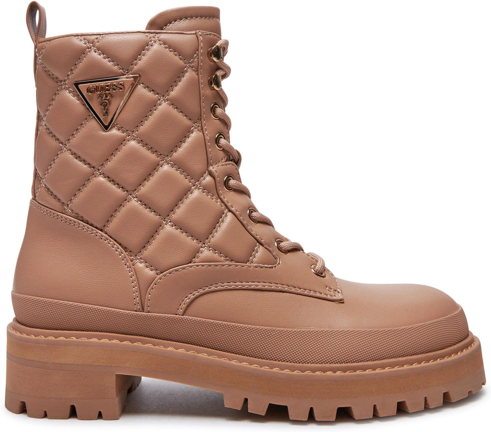 Guess Damskie Trapery FLFBD2ELE10 Beżowy Dodaj do swojej kolekcji wyjątkowe trapery marki Guess, które łączą modny design z wygodą użytkowania! Wykonane z imitacji skóry, te damskie buty wyróżniają się elegancją i trwałością, stanowiąc idealny wybór na co dzień i nie tylko. Trapery Guess to gwarancja stylu w każdej sytuacji – od miejskich spacerów po weekendowe wyjazdy. Dzięki starannie dopracowanym detalom, ten model doskonale wpisuje się w najnowsze trendy, zapewniając jednocześnie komfort noszenia. Wybierz Guess i podkreśl swój unikalny charakter!