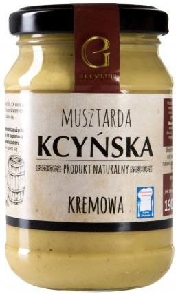 Musztarda Kcyńska Kremowa Historia Musztardy z Kcyni sięga końca lat 50. XX wieku. Była to jedna z najbardziej cenionych i poszukiwanych musztard w Polsce. Firmie Grewling z Kcyni udało się odtworzyć dawną linię produkcyjną. Swój doskonały smak i aromat musztarda zawdzięcza użyciu wyłącznie całych ziaren gorczycy, rozcieraniu ich za pomocą kamiennych młynów żarnowych oraz leżakowaniu zacieru w drewnianych beczkach dębowych. Wytwórnia opiera się na procesie technologicznym z 1929 roku. Składniki:woda, ziarna gorczycy białej, ocet winny, miód naturalny 7%, sól, nasiona gorczycy białej i czarnej, przyprawy. Masa netto: 190g Wartość odżywcza w 100 g produktu:- Wartość energetyczna 448 kJ/105 kcal- Tłuszcze <0,5 g - W tym kwasy tłuszczowe nasycone <0,1 g- Węglowodany 20 g - W tym cukry 10 g- Białko 6,6 g- Sól 2,5 g