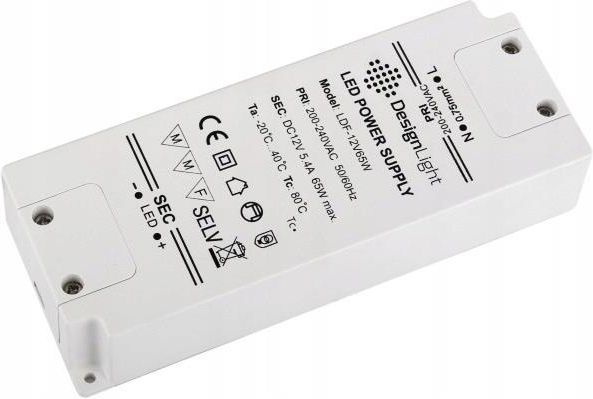 Zasilacz do LED STANDARD PLUS o mocy 65W. Zasilacz do LED STANDARD PLUS to nowoczesny i bezpieczny zasilacz, który gwarantuje poprawne i bezawaryjne działanie oświetlenia LED przez długie lata. Zasilany jest napięciem przemiennym o wartości 200–240V~50/60Hz. Obniża napięcie wyjściowe do 12V DC. Zamknięty jest w obudowie izolacyjnej z tworzywa sztucznego w kolorze białym. Standard Plus służy do zasilania oświetlenia LED o napięciu 12V DC Zasilacze Standard Plus to idealne rozwiązanie do pod szafkowych opraw kuchennych lub krótszych odcinków taśm LED. Dostępne są w wersjach o mocy: 7W, 12W, 16W, 24W, 33W, 54W, 65W i 80W. Zasilacz sprzedawany jest bez okablowania. Na tej aukcji kupujesz - 1 szt. . Zapraszamy stolarzy, hurtownie i sklepy do stałej współpracy.