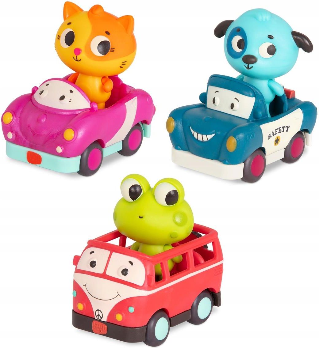✅Light Up Cars – zestaw 3 miękkich AUTEK sensorycznych z Pieskiem – Land of B., 1+ ✅ ✅ ✅ ZESTAW TRZECH MIĘKKICH POJAZDÓW SENSORYCZNYCH z WESOŁYMI PASAŻERAMI seria Land of B. – podmarka B.toys Samochodziki idealne dla dziecięcych rączek. Dodatkowo świecące światła i wgrane odgłosy. W każdym autku inny pasażer/kierowca – zwierzątko z ruchomą głową i ruchomymi przednimi łapkami. Zwierzątka są wyjmowane i mogą być stosowane wymiennie między modelami. Efekty świetlne i dźwiękowe uruchamiane poprzez naduszenie figurki w autku. Zestaw dostępny w dwóch opcjach do wyboru: zestaw I : busik z żabką – Jax & Groovy Patootie radiowóz z pieskiem – Woofer & Officer Lawly wyścigówka z kotkiem – Lolo & Smarty Pants zestaw II : wyścigówka z pandą – Bingo & Freddy Zoom pick-up z hipciem – Sunny & Muddy Miles motocykl z liskiem – Dash & Motor Mike Możliwość kolekcjonowania, a także wymiany pasażerów między autkami. Uwaga: w ramach serii dostępna również mata Whimsy Land, z ulicami miasteczka Land of B. (patrz produkty powiązane) – idealna do zabawy wesołymi samochodzikami. Nadwozie autek ma zaokrąglone krawędzie i wykonane jest z gumy, dzięki czemu samochodziki są bardziej przyjazne w razie, gdy dziecko na nie upadnie. Materiał, z którego autka są wykonane oraz zaokrąglone krawędzie sprawiają również, że zderzenia autek z meblami, drzwiami itp. są mniej inwazyjne i bardziej znośne dla ucha… – zabawka przyjazna rodzicom (!). W każdym z autek wmontowane 3 baterie AG13 (guzikowe). Autka przeznaczone są dla dzieci od 1. roku życia – chętnie użytkowane również przez starsze dzieci. Zabawka zgodna z unijnymi, amerykańskimi i kanadyjskimi normami bezpieczeństwa zabawek, w tym regulacjami odnośnie ftalanów i BPA. Kolory i detale mogą się różnić od widocznych na zdjęciach. Wymiary pojedynczego autka ok. 9cm x 5cm x 9cm. Całość w ładnym, otwartym opakowaniu o wymiarach: 11,2cm x 8,3cm x 32,4cm. IDEALNE NA PREZENT. Opakowanie wykonane z materiałów z recyklingu, nadrukowane tuszami na bazie soi, w całości nadaje się do ponownego przetworzenia. Zaleca się przekazanie go do utylizacji. ✅83397 ✅ ✅ Rodzaj materiału: Plastik Kod producenta: 062243468368 ✅Light Up Cars - zestaw 3 miękkich AUTEK sensorycznych z Pieskiem - Land of ✅