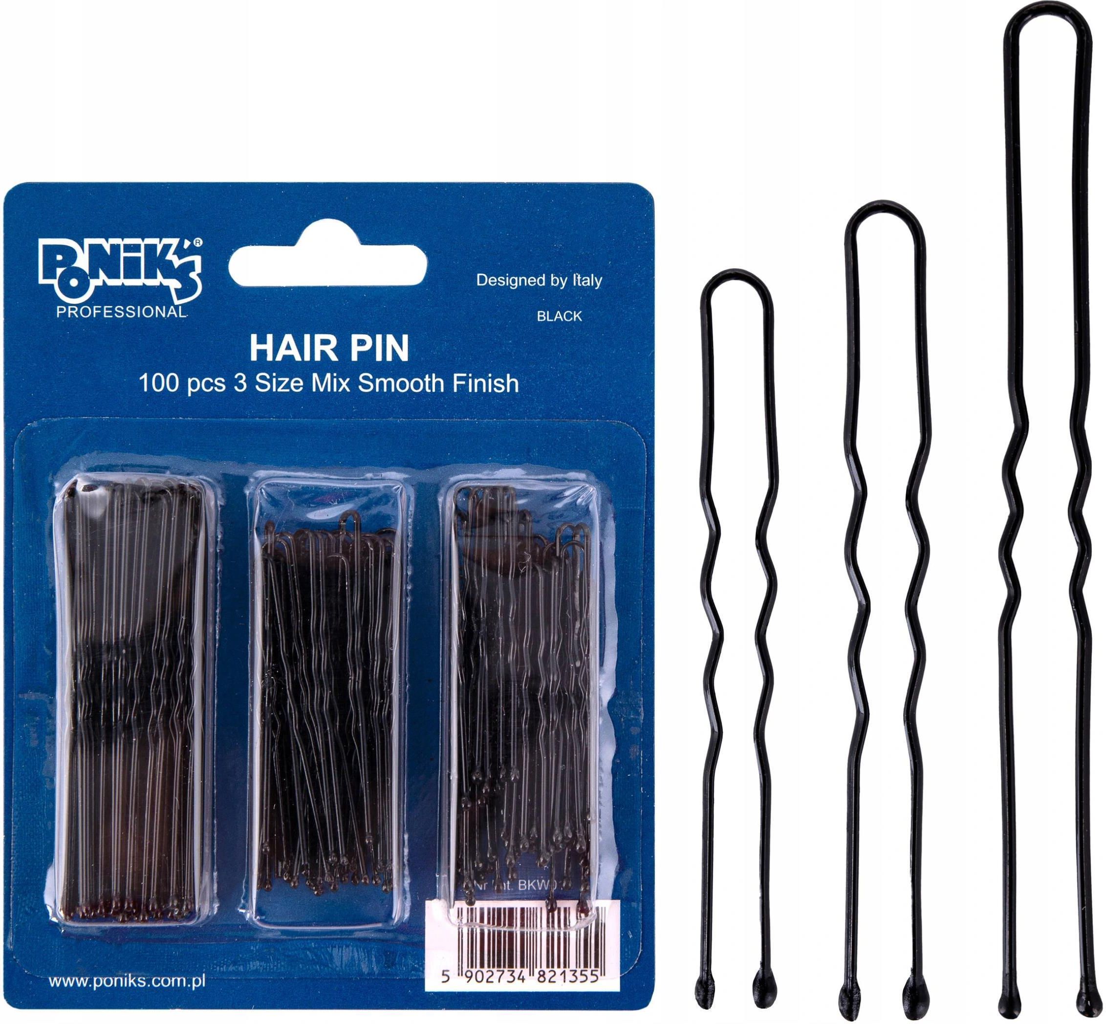Poniks Zestaw Kokówek - 3 rozmiary 100 sztuk Czarne Fryzjerskie kokówki metalowe zakończone kulką Metalowe kokówki fryzjerskie do włosów Ponik’s to niezbędny element każdego salonu. Są wytrzymałe, wygodne i łatwe w użyciu. Zestaw składa się z 100 sztuk kokówek w rozmiarach: 40x 4,5cm, 30x 5,5cm, …