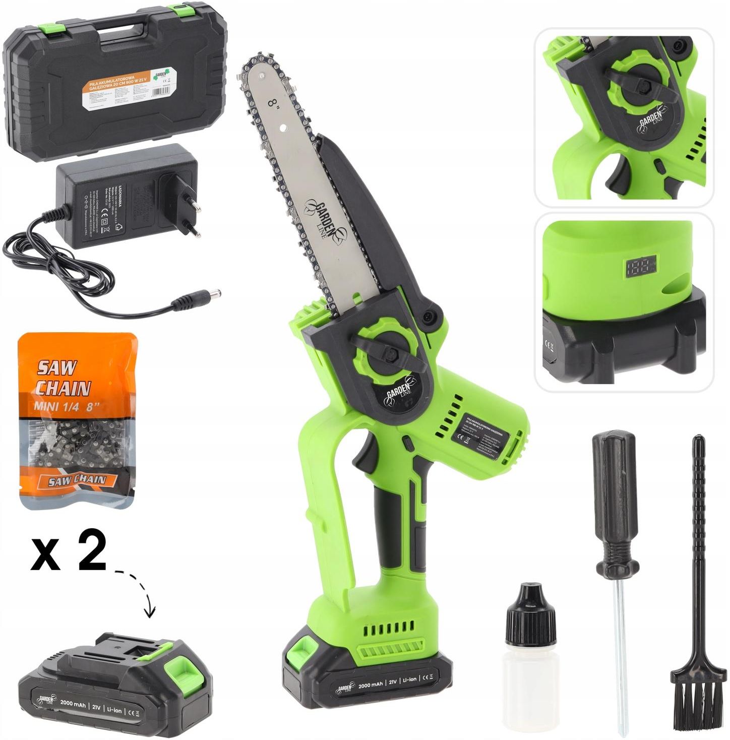 PIŁA AKUMULATOROWA GAŁĘZIOWA 20 CM 900W 21V Poznaj niezwykle poręczną i mocną piłę akumulatorową do gałęzi – idealną do przycinania drzewek, krzewów oraz codziennych prac w ogrodzie! Dzięki swojej lekkiej konstrukcji i bezszczotkowemu silnikowi zapewnia komfort i efektywność bez potrzeby używania siły. Z piłą o długości prowadnicy 20 cm oraz prędkości aż 4500 obr./min żadne gałęzie nie będą już problemem. W zestawie znajdziesz wszystko, czego potrzebujesz – od ładowarki po zapasowy łańcuch. To pełny pakiet gotowy do działania! Najważniejsze cechy i korzyści: ⚡ Bezszczotkowy silnik – większa żywotność i wydajność ✂️ Długość prowadnicy 20 cm – idealna do przycinania gałęzi Dwa akumulatory w zestawie – praca bez przerwy Dane techniczne i specyfikacja: Prędkość bez obciążenia: 4500 obr./min Długość prowadnicy: 20 cm Napięcie: 21 V Moc maksymalna: 900 W Silnik: bezszczotkowy W zestawie: ładowarka, 2 akumulatory 2Ah, zapasowy łańcuch Dlaczego warto kupić ten produkt? Bo zasługujesz na wygodę i moc w jednym narzędziu! Piła akumulatorowa gałęziowa łączy w sobie mobilność, siłę i ergonomię. To idealny wybór dla każdego, kto chce zadbać o swój ogród szybko, bezpiecznie i bez plączących się kabli. Twoje gałęzie nie mają szans! 🌳💥 Piła akumulatorowa to narzędzie, które pokochasz już od pierwszego cięcia! Dzięki niej każda praca w ogrodzie stanie się przyjemnością. Kompaktowa, a zarazem mocna – to wybór, którego nie pożałujesz.