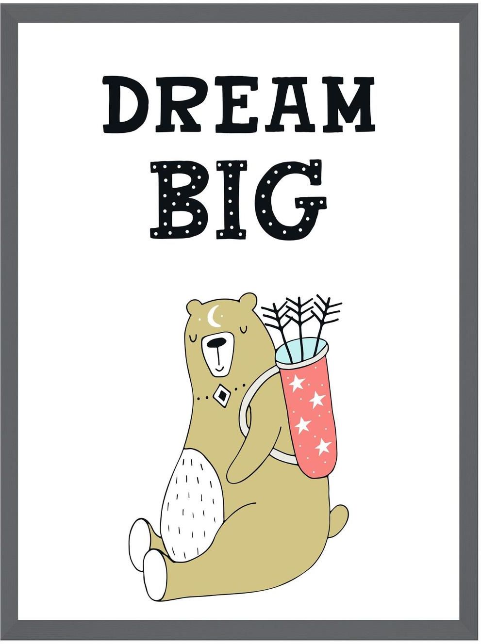 Plakat Dziecięce Dream Big_2 30X40 Cm + Ramka Kamienna Szarość Lubliniec