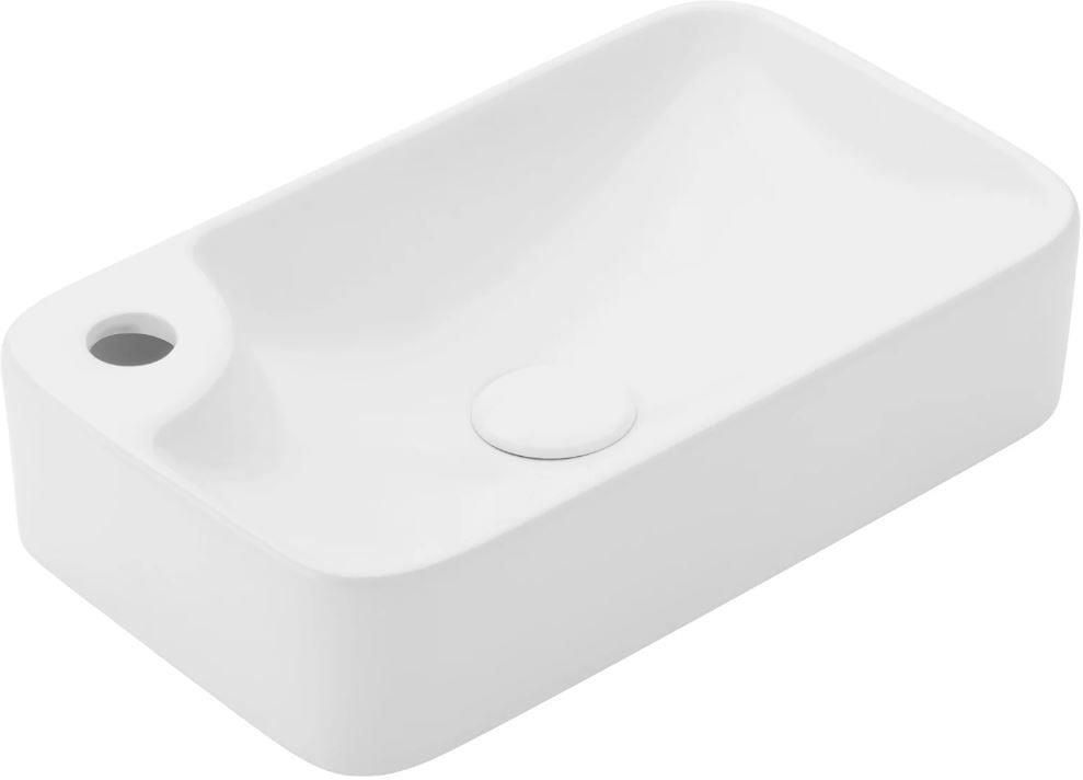 Midea TR4121 - idealna umywalka do małej łazienki! Umywalka ceramiczna Midea TR4121 ma szerokość 44cm i głębokość 26cm, charakteryzuje się łagodnym kształtem, który doskonale wpasowuje się w eleganckie, małe blaty. Dodaje łazience lekkości i stylu. Umywalka posiada dedykowane miejsce na armaturę, co sprawia, że jest praktyczna i funkcjonalna. Doskonale sprawdzi się w małych łazienkach, gdzie każdy centymetr przestrzeni jest na wagę złota. Odkryj nową jakość w swojej łazience dzięki umywalce Midea TR4121 i ciesz się idealnym połączeniem elegancji i praktyczności. głębokość 26 cm szerokość 44 cm wysokość 10 cm waga ceramiki 7 kg kolor błyszcząca biel bez przelewu kształt owalny prostokąt miejsce na armaturę Funkcjonalność Umywalka ceramiczna Midea TR4121 o szerokości 41cm i głębokości 26cm wyróżnia się nie tylko swoim łagodnym kształtem, ale także funkcjonalnością i praktycznością. Dzięki swoim kompaktowym wymiarom doskonale pasuje do małych szafek łazienkowych, co sprawia, że jest idealna dla osób, które poszukują rozwiązań pozwalających zaoszczędzić przestrzeń. Umywalka posiada dedykowane miejsce na montaż armatury, co umożliwia wybór odpowiedniej kolorystyki dla Twojej łazienki. Wysoka jakość wykonania Umywalka Midea powstała z ceramiki najwyższej jakości, cechuje ją precyzja wykonania cienkich rantów UP-SLIM, wyjątkowa twardość oraz odporność na zarysowania. Dzięki zastosowanej powłoce UP-CLEAN w łatwy sposób utrzymasz ją w czystości Do zastosowania z armaturą: sztorcową wysoką, podtynkową bądź ścienną. Korek click-clack nie jest wliczony w cenę. Wymiary umywalki UPTREND Midea TR4121 Rysunek techniczny głębokość 26 cm szerokość 41 cm wysokość 10 cm waga 7 kg Umywalka ceramiczna nablatowa prostokątna. Powłoka UP-CLEAN Kod produktu: TR4121