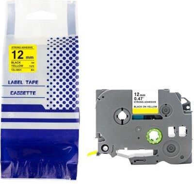 Prism Taśma Do Brother Tze-S631 12mm X 8 M Czarny Na Żółtym Zamiennik Lubniewice
