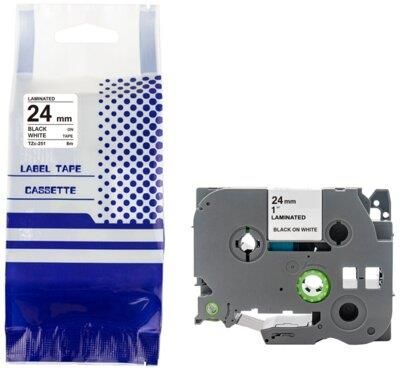 Taśma, zamiennik Brother TZE-251 o szerokości 24 mm i długości 8 m, to laminowana taśma etykietowa wykonana z tworzywa sztucznego.