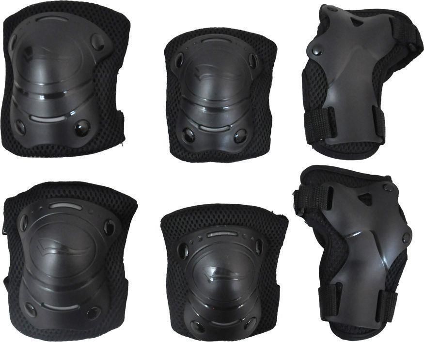 Opis: KOMPLET OCHRANIACZY JUNIOR. Parametry techniczne: w zestawie : 2 ochraniacze na nadgarstek, 2 ochraniacze na łokieć, 2 ochraniacze na kolano materiał: pianka EVA z podszewką z siatki skorupa: PE mocowane na elastycznych paskach z rzepami odblaskowe elementy na zapięciach regulowana długość pasków przyjazne dla skóry, nie powodują podrażnień odporne na uszkodzenia Rozmiar: L/XL (8-12 lat; wzrost 130-160 cm) Produkt zgodne z normami bezpieczeństwa CE pakowanie meshbag Pozostałe informacje: