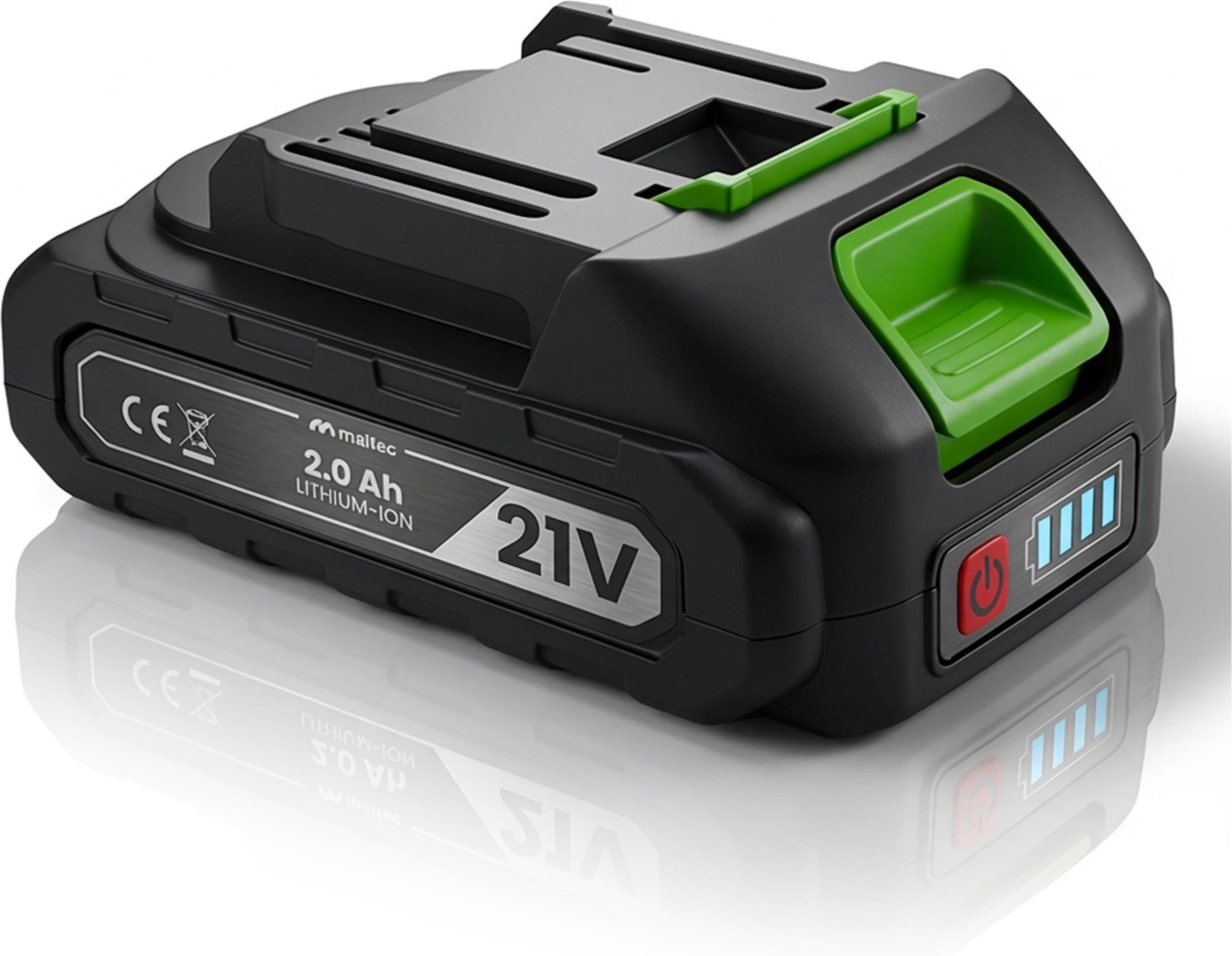 BATERIA AKUMULATOR DO NOŻYC SEKATORA MALTEC 21V LI-ION 2000MAH NAJWAŻNIEJSZE CECHY Wydajny akumulator litowo-jonowy o napięciu 21 V Pojemność 2000 mAh (2.0Ah) - stabilne i mocne zasilanie narzędzi ogrodowych Oryginalna bateria dedykowana do urządzeń MasterCut500W i MasterHedge-500W Idealny jako akumulator zapasowy - możliwość wygodnej pracy z dwoma bateriami Kompaktowa, lekka konstrukcja - łatwe przenoszenie i przechowywanie Prosty i szybki montaż w sekatorze lub nożycach - wymiana bez użycia dodatkowych narzędzi PARAMETRY Rodzaj akumulatora: Li-Ion Napięcie: 21 V Pojemność: 2000 mAh (2.0Ah) Orientacyjny czas ładowania: ok. 1,5-2,5 godziny (w zależności od użytej ładowarki) Waga baterii: 310g Dedykowany do akumulatorowych narzędzi ogrodowych MalTec: sekator MasterCut500W oraz nożyce MasterHedge-500W.