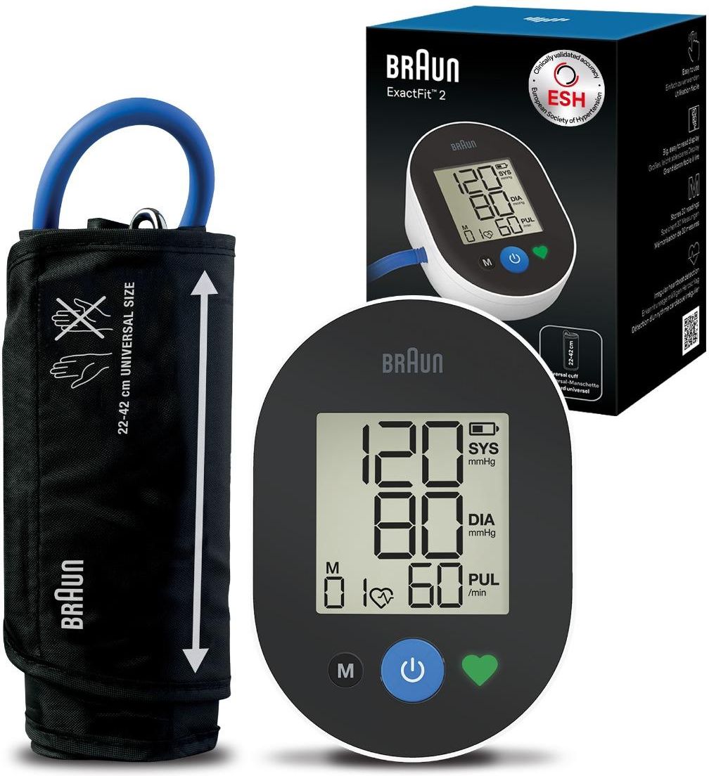 Ciśnieniomierz naramienny Braun ExactFit™ 2 Ciśnieniomierz naramienny z kolorowym wskaźnikiem ułatwiającym interpretację wyniku pomiaru Ciśnieniomierz Braun ExactFit™ 2 został zaprojektowany dla osób chcących monitorować stan swojego zdrowia w domowym zaciszu. Jego dokładność została klinicznie potwierdzona zgodnie z protokołem Europejskiego Towarzystwa Nadciśnienia Tętniczego (ESH). Obsługa urządzenia jest niezwykle prosta – wystarczy nacisnąć jeden przycisk, aby na wyświetlaczu pojawiły się wartości skurczowe, rozkurczowe oraz puls. Dodatkowym ułatwieniem interpretacji wyników jest kolorowy wskaźnik, który pomaga określić poziom ciśnienia krwi. Urządzenie wyposażone jest w technologię delikatnego pompowania, która automatycznie wykrywa poziomy ciśnienia krwi już podczas napełniania mankietu, co zapewnia większy komfort użytkowania. Braun ExactFit™ 2 oferuje również funkcję wykrywania nieregularnej pracy serca oraz pamięć, która przechowuje 30 ostatnich wyników. Użytkownik ma także dostęp do aplikacji Braun Healthy Heart, która umożliwia ręczne wprowadzanie danych dotyczących ciśnienia krwi, co ułatwia monitorowanie swoich wyników w czasie. Kliniczna dokładność Klinicznie potwierdzona dokładność zgodnie z międzynarodowym protokołem ESH sprawia, że ​​ciśnieniomierz naramienny Braun ExactFit™ 2 zapewnia dokładne wyniki, którym można zaufać. Łatwa interpretacja wyników Kolorowy wskaźnik pomaga zrozumieć wartości skurczowe i rozkurczowe oraz tętno zgodnie z wytycznymi Światowej Organizacji Zdrowia (WHO). Urządzenie interpretuje poziomy ciśnienia od prawidłowego ciśnienia do poważnego nadciśnienia. Łagodne pomiary ciśnienia krwi Braun ExactFit™ 2 mierzy ciśnienie krwi podczas pompowania mankietu, zatrzymując zaciskanie po uzyskaniu dokładnego odczytu, a następnie go opróżnia, zapewniając szybszy i bardziej komfortowy pomiar. Wykrywanie nieregularnej pracy serca Zaawansowane funkcje ciśnieniomierza Braun ExactFit™ 2 pomagają wykrywać nieregularny rytm pracy serca, dostarczając dodatkowych informacji o stanie zdrowia serca. Pasuje na większość ramion Mankiet do pomiaru ciśnienia krwi, dołączony do ciśnieniomierza Braun ExactFit™ 2, został zaprojektowany tak, aby pasował na ramiona o obwodzie 22-42 cm, zapewniając wygodę niezależnie od budowy ciała. Zawartość zestawu 1x Braun ExactFit™ 2 Ciśnieniomierz naramienny 1x Uniwersalny mankiet 22-42cm 4 baterie AA Instrukcja obsługi APLIKACJA BRAUN HEALTHY HEART* Śledź swoje wyniki w czasie dzięki aplikacji Braun Healthy Heart. Wprowadź swoje dane do aplikacji i uzyskaj narzędzia, które pomogą Ci podejmować lepsze decyzje mające wpływ na stan zdrowia. Przechowuj swoje dane, monitoruj historię wyników i odkrywaj cenne porady dotyczące zdrowia. *Braun ExactFit™ 2 nie jest urządzeniem podłączonym do aplikacji, wyniki należy wprowadzać ręcznie