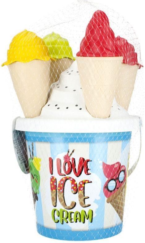 WIADERKO Z LODAMI DO PIASKOWNICY Wiaderko z foremkami w kształcie lodów to świetny zestaw dla najmłodszych do zabawy w piaskownicy. Zestaw cechuje bardzo dobra jakość wykonania. Sprawdzi się zarówno na plaży jak i w domowej piaskownicy. ZAWARTOŚĆ ZESTAWU: Wiaderko Sitko z otworami na lody i łyżkę 4 foremki w kształcie lodów Łyżeczka SPECYFIKACJA: Wymiary wiaderka ok.: 14,5 x 17 cm Wysokość foremki loda ok.: 14 cm Długość łyżeczki ok.: 14,5 cm Wysokość całego zestawu ok.: 30 cm Sugerowany wiek: 10 m+ Zestaw oryginalnie zapakowany w siatkę. UWAGA Kolorystyka zestawu może nieznacznie różnić się od przedstawionej na zdjęciach.