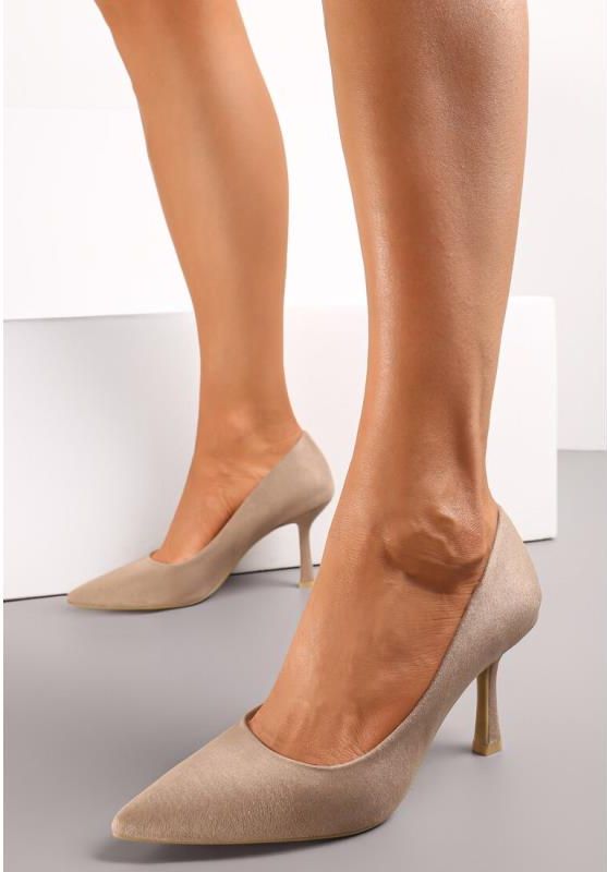 CIEMNOBEŻOWE SZPILKI ZE SZPICZASTYM NOSKIEM Z IMITACJI ZAMSZU ROZMIAR 41 Luboń