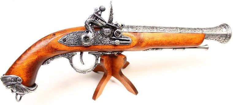 REPLIKA WŁOSKIEGO PISTOLETU z XVIIIw NA STOJAKU DENIX MODEL 1031G+800 DANE TECHNICZNE: Replika NA STOJAKU włoskiego pistoletu skałkowego z XVIII wieku. Metalowe elementy wykończenia jak i lufa - odlane ze efektownymi zdobieniami. Prezentowana replika, to włoski pistolet z zamkiem skałkowym z XVIII …