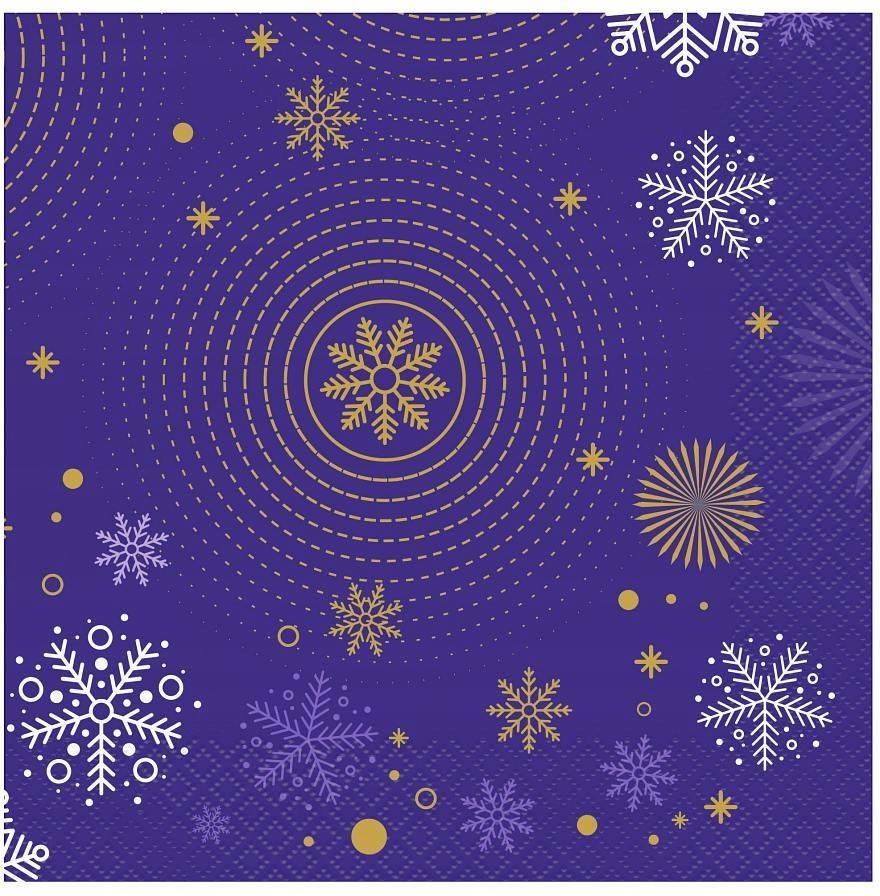 Granatowo-złote serwetki świąteczne – elegancja i zimowa magia na Twoim stole Eleganckie serwetki o zimowym designie to wyjątkowy dodatek do świątecznych przyjęć i zimowych spotkań. Na granatowym tle rozmieszczone są białe i złote płatki śniegu oraz subtelne złote akcenty w postaci kropek i linii tworzących koncentryczne kręgi. Całość nawiązuje do tańczących w powietrzu płatków śniegu, tworząc efekt pełen blasku i świątecznego ciepła. Połączenie granatu i złota nadaje im luksusowy i ponadczasowy charakter, który idealnie komponuje się z elegancką zastawą. Najważniejsze cechy Wyjątkowy zimowy design: granatowe tło z białymi i złotymi płatkami śniegu oraz delikatnymi akcentami w postaci kropek i linii. Luksusowe połączenie kolorów: granat i złoto tworzą elegancką, świąteczną kompozycję idealną na zimowe okazje. Uniwersalne zastosowanie: sprawdzą się podczas wigilijnych kolacji, świątecznych przyjęć i eleganckich spotkań rodzinnych. Funkcjonalne i dekoracyjne: oprócz praktycznej funkcji stanowią stylowy element ozdobny stołu. Wysoka jakość wykonania: trwały papier o gładkiej strukturze zapewnia elegancki wygląd i przyjemny w dotyku materiał. FAQ – Najczęściej zadawane pytania 1. Czy serwetki są dwuwarstwowe? Tak, serwetki wykonane są z wysokiej jakości, dwuwarstwowego papieru, który zapewnia trwałość i elegancki wygląd. 2. Na jakie okazje najlepiej się sprawdzą? Serwetki idealnie pasują na wigilijną kolację, świąteczne obiady, zimowe przyjęcia i eleganckie spotkania w gronie bliskich. 3. Czy wzór jest nadrukowany na całej powierzchni? Tak, motyw płatków śniegu i złotych akcentów znajduje się na całej widocznej powierzchni serwetki, co dodaje stołowi wyjątkowego uroku.