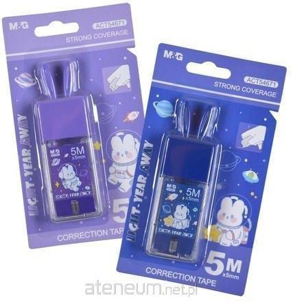 Miks wzorów, towar wysyłany losowo. Cena za sztukę. Korektor w taśmie Light Year Away 5 m x 5 mm M&G. Korektor w kosmicznych kolorach i uroczych postaciach z taśmą o szerokości 5 mm, która płynnie przenosi się na papier i jest gotowa do pisania.