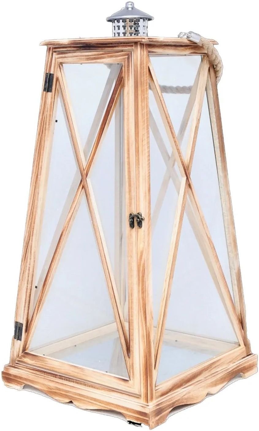 Latarnia Sycylia L - 71x35,5 cm Latarnia SYCYLIA to wyjątkowy element dekoracyjny, który wprowadza do każdego wnętrza lub przestrzeni na świeżym powietrzu ciepły, nastrojowy blask. Jej klasyczny kształt i naturalne drewniane wykończenie sprawiają, że idealnie komponuje się zarówno z nowoczesnymi, jak i rustykalnymi aranżacjami. Latarnia doskonale sprawdza się w salonie, na tarasie, balkonie czy w ogrodzie, tworząc przyjemną atmosferę podczas wieczornych spotkań lub chwil relaksu.