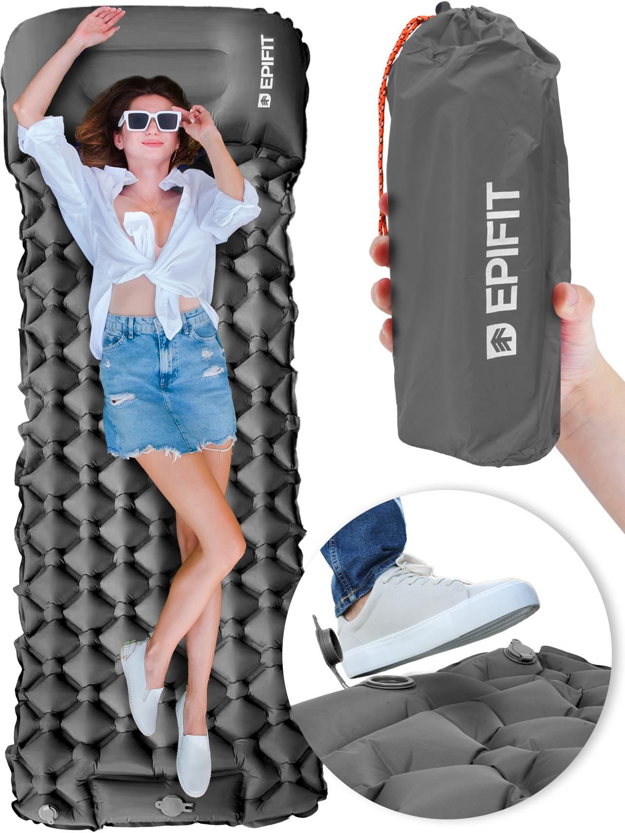 MATERAC SAMOPOMPUJĄCY TURYSTYCZNY KEMPINGOWY SZARY POMPKA ZWIJANA MATA ◾ DUŻE ROZMIARY ◾ LEKKI ◾ WBUDOWANA POMPKA ◾ PODUSZKA ◾ DOBRA IZOLACJA ◾ Teraz w Zestawie z Pokrowcem oraz Łatką Naprawczą! Postaw na doświadczenie i profesjonalizm! NAJWAŻNIEJSZE CECHY PRODUKTU Lekki i kompaktowy – idealny na biwak, wędrówkę górską, camping lub wszędzie tam, gdzie liczy się niska waga i mobilność. Samopompujący z wbudowaną pompką nożną – nie potrzebujesz dodatkowego sprzętu do napompowania – wystarczy naciskać pompkę wbudowaną w materac. Zintegrowana poduszka – zapewnia dodatkowy komfort podczas snu lub wypoczynku. Odporny na zabrudzenia – dzięki wytrzymałemu materiałowi TPU + 100% nylon, łatwy w czyszczeniu i trwały w użytkowaniu. Dobra izolacja od podłoża – 5 cm grubości zapewnia komfort i chroni przed chłodem Zestaw 3w1 – w komplecie: materac + pokrowiec + łatka naprawcza. Antypoślizgowa struktura komórkowa – konstrukcja powierzchni zwiększa przyczepność i komfort użytkowania. Wybierz materac REST i ciesz się komfortowym snem w każdym terenie – gotowy do użycia w kilka chwil! PARAMETRY Marka: Epifit Kolor: szary Wymiary materaca: 190 x 60 x 5 cm Materiał: TPU + 100% Nylon (odporny na brud) Grubość materaca: 5 cm Waga materaca: 600 g Konstrukcja: pompowana Typ pompki: wbudowana pompka nożna Rodzaj: turystyczny, jednoosobowy Zestaw zawiera: : materac, pokrowiec, łatkę naprawczą Oryginalny produkt od polskiego dystrybutora! Materac REST to solidne rozwiązanie na wiele sezonów. Wykonany z trwałego nylonu i TPU, jest odporny na zabrudzenia i uszkodzenia. Wbudowana pompka nożna oraz poduszka zwiększają wygodę użytkowania. Przystępna cena, łatwość obsługi oraz staranne wykonanie cieszą się wysokim uznaniem wszystkich zainteresowanych i Klientów. DLACZEGO WARTO? Błyskawiczne rozkładanie i pompowanie – dzięki wbudowanej pompce możesz go napompować w kilka chwil bez wysiłku. Izolacja i wygoda – 5 cm grubości zapewnia świetną izolację od zimnego podłoża i komfortowy sen. Kompaktowość – po złożeniu zajmuje bardzo mało miejsca, idealny do plecaka. Wszechstronność – sprawdzi się na campingu, pod namiotem, w górach, a nawet w domu jako dodatkowe miejsce do spania. WBUDOWANA POMPKA NOŻNA Ten lekki i wygodny materac turystyczny posiada wbudowaną pompkę nożną, która pozwala szybko i bez wysiłku go napompować – wystarczy kilka naciśnięć stopą. Po rozłożeniu osiąga wymiary 190 × 60 cm i grubość 5 cm, co zapewnia komfortowy wypoczynek w terenie. Po złożeniu jest kompaktowy i łatwy do przenoszenia – zmieści się w plecaku. NIEZAWODNA IZOLACJA I TRWAŁOŚĆ Nasz materac został wykonany z połączenia wytrzymałego nylonu i elastycznego materiału TPU, co zapewnia skuteczną ochronę przed zimnym podłożem. Taka kombinacja materiałów sprawia, że materac jest odporny na przetarcia, wilgoć i zmienne warunki pogodowe. Dzięki temu świetnie sprawdzi się podczas biwaków, wędrówek i noclegów w terenie – niezależnie od pogody. WYGODNY POKROWIEC W komplecie z materacem otrzymujesz wygodny pokrowiec, który ułatwia przechowywanie i chroni go podczas transportu. Dzięki niewielkiej wadze i kompaktowym wymiarom po złożeniu, materac bez problemu zmieścisz w plecaku. Składanie jest szybkie – wystarczy odkręcić zawór i zwinąć materac w rulon. ZINTEGROWANA PODUSZKA Zintegrowana poduszka w materacu samopompującym to praktyczne rozwiązanie, które zwiększa komfort snu bez potrzeby dodatkowych akcesoriów. Wbudowana w strukturę materaca, automatycznie napełnia się powietrzem podczas pompowania, zapewniając optymalne podparcie dla głowy i karku. Dzięki temu oszczędzasz miejsce w bagażu i masz pewność wygodnego wypoczynku w każdych warunkach. PRAKTYCZNY ZAWÓR Matę turystyczną wyposażono w szczelny zawór, który umożliwia sprawne napełnienie powietrzem oraz szybkie spuszczenie go po użyciu. To wygodne rozwiązanie, które oszczędza czas i sprawdza się idealnie w podróży czy podczas wędrówek z plecakiem. ODPORNY NA WARUNKI ATMOSFERYCZNE Wodoodporne właściwości materaca samopompującego zapewniają skuteczną ochronę przed wilgocią, co czyni go idealnym wyborem na biwaki, kempingi i wyprawy w trudnych warunkach. Dzięki materiałowi odpornemu na wodę, materac nie wchłania wilgoci z podłoża, pozostając suchy i komfortowy nawet na mokrej trawie czy wilgotnym podłożu. To gwarancja wygody i trwałości w każdych warunkach pogodowych. ZESTAW ZAWIERA Materac Samopompujący Pokrowiec Łatka Naprawcza
