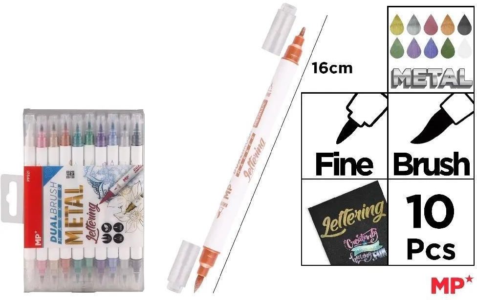 Markery pędzelkowe metaliczne dwustronne 10 kol. 10szt./opak. MP Wymiary: 108x164 mm Opakowanie: pudełko