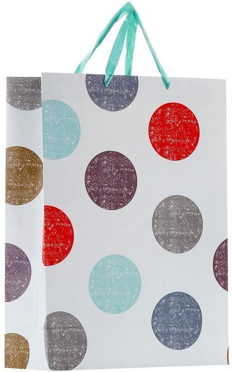 - torba prezentowa - wzór: koła - kolorystyka: niebieska w kolorowe koła - wymiary: 42 x 31 x 12 cm