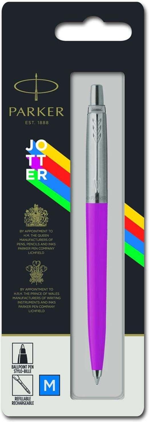 Długopis Parker Jotter - Magenta Długopis Parker Jotter to jeden z najbardziej rozpoznawalnych produktów marki Parker. Jego różowy kolor sprawia, że łatwo go zapamiętać oraz wyróżnia się spośród innych długopisów. Jednak oryginalna kolorystyka to tylko jeden z wielu jego atutów. Model ten jest wykonany z szczotkowanej stali i żywicy, co gwarantuje trwałość i elegancję. Wyjątkowy Design i Jakość Długopis Parker Jotter posiada gustowny klip oraz pierścień z logo marki, wykonane w srebrnym kolorze. Jest również ceniony za swój niebanalny design oraz doskonałą jakość. Każdy element długopisu został wykonany z ogromną starannością, co sprawia, że jest znakomicie wyważony i komfortowy w użytkowaniu. Atrakcyjna Cena i Funkcjonalność Jest to nie tylko estetyczny, ale i funkcjonalny długopis. Wyposażony jest w przyciskowy mechanizm wysuwania wkładu, co zwiększa wygodę korzystania z niego. Dzięki ekstrawaganckiemu, kobiecemu kolorowi lakieru i stonowanym srebrnym wykończeniom, Parker Jotter jest idealnym wyborem zarówno do pracy, jak i na co dzień. Jego atrakcyjna cena sprawia, że jest dostępny dla każdego. EAN: 3026980759964