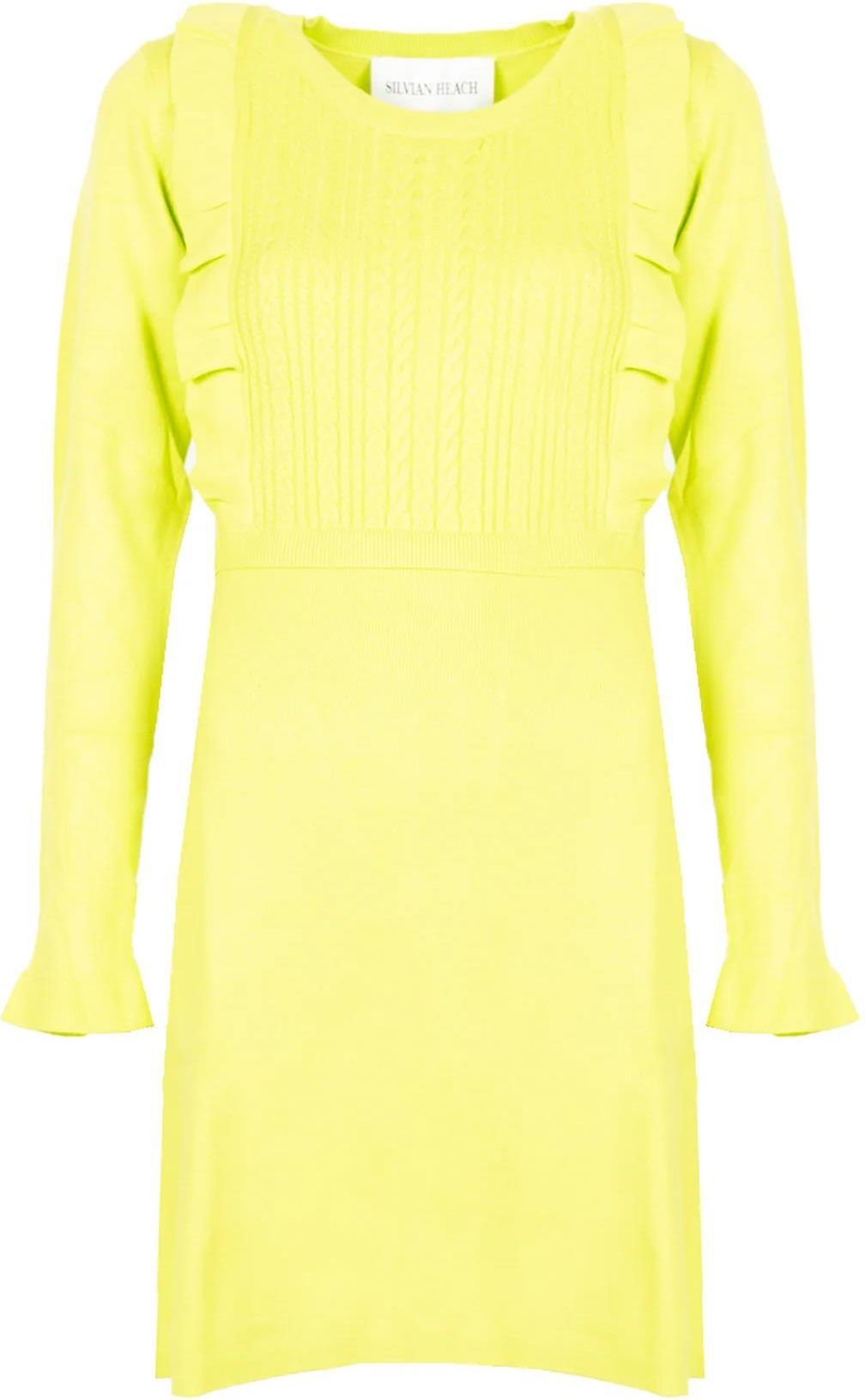 Prosty fason Długość midi, do kolan Z warkoczowym splotem Dekolt okrągły Dekolt, dół zakończone ściągaczem Rękawy oraz przód ozdobione falbanką Wykonana z wysokiej jakości tkaniny