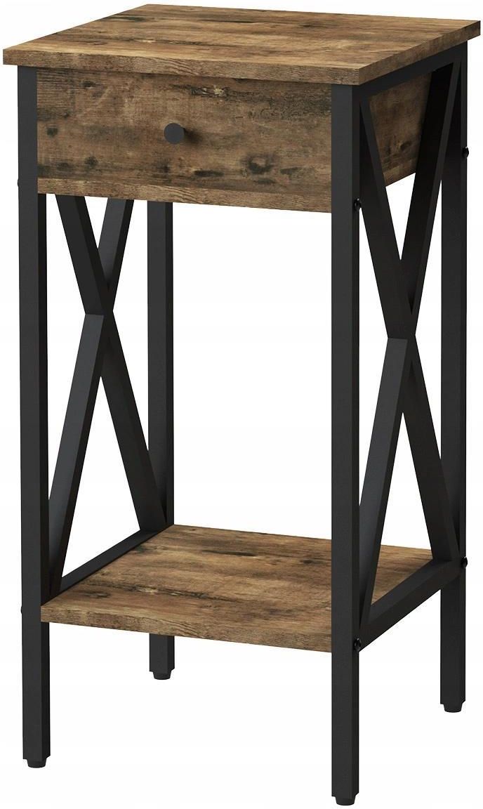 Stolik nocny z szufladą Funky Furniture Nie masz w swojej sypialni miejsca na ulubioną książkę? Na zostawienie telefonu na noc? Na położenie lampki nocnej? Z uwagi na to za każdym razem, gdy skończysz czytać albo, gdy dzwoni budzik, musisz wstać z łóżka? Idealnym rozwiązaniem dla Ciebie może okazać się Szafka nocna Spacetronik Funky Furniture! Praktyczna szafka nocna do Twojego mieszkania Stolik nocny Spacetronik Funky Furniture został wyposażony w blat o wymiarach 35×35 cm. Bez problemu będziesz w stanie składować na nim wszystkie najpotrzebniejsze przedmioty. Bez różnicy czy będzie to telefon, książka czy też lampka nocna. By natomiast zwiększyć jego uniwersalność, w jego podstawie została zastosowana półka i szuflada. Wybierz Szafkę nocną Spacetronik Funky Furniture i sprawdź jej wszystkie zalety! Najważniejsze cechy: Kolor blatu: Rustykalny brąz, Kolor stelaża: Czarny, Materiał: Okleina melaminowa MDF, stal stopowa malowana proszkowo, Grubość półki: 1,5 cm, Ilość szuflad: 1, Wymiary: 35×35×70 cm, Miej wszystko, co ważne w zasięgu ręki nie wstając z łóżka! Znasz to uczucie, gdy leżysz wygodnie w łóżku, powoli zasypiasz, ale musisz wstać z niego, żeby pójść zgasić światło? Po powrocie do łóżka często jesteś już wyrwany ze snu i nie możesz zasnąć. W celu uniknięcia frustracji z tego płynącej warto zainwestować w stolik nocny, na którym bez problemu będziesz mógł postawić lampkę. Jednak to nie wszystko. Blat jest na tyle duży, że bez problemu zmieścisz na nim jeszcze ulubioną książkę i telefon. Gdy jednak nie będzie to dla Ciebie wystarczająca powierzchnia, to do dyspozycji masz również pojemną półkę i szufladę. Dzięki temu będziesz mógł bez problemu przechowywać w szafce wszystko to, co tylko zechcesz. Zachowaj porządek dzięki szafeczce z półką i szufladą Z szafką Spacetronik Funky Furniture będziesz w stanie zadbać o porządek w swoim mieszkaniu! Dodatkowa półka pozwoli Ci na składowanie na niej wszystkiego tego, na co nie masz miejsca na głównym blacie. Dodatkowo pojemna szuflada pozwoli Ci schować wiele najróżniejszych przedmiotów tak, żeby nie leżały na wierzchu. Dzięki temu bez problemu zadbasz o porządek przy swoim łóżku. Duża uniwersalność i funkcjonalność Pojemny blat wraz z półką i szufladą. Pozwolą Ci one na składowanie tego, co tylko chcesz. Dzięki temu stolik nie będzie Ci służył tylko jako szafka nocna. Bez problemu użyjesz go jako mebel w salonie do postawienia na nim chociażby zdjęć rodzinnych czy też kwiatka. Dopasuj stolik nocny do swojego wnętrza — Elegancja i styl w Twojej sypialni Stolik Spacetronik Funky Furniture został wykonany z wysokiej jakości stali stopowej malowanej proszkowo. Dzięki temu wykazuje się on wzmocnioną odpornością na korozję. Kolor czarny pozwoli Ci bezproblemowo dopasować szafkę do reszty swoich mebli. Natomiast blat i półka zostały wykonane z płyty MDF i są w kolorze rustykalnego brązu. Nadaje on całości surowego, industrialnego klimatu. Dzięki temu całość prezentuje się niezwykle nowocześnie, idealnie wpasowując się w Twoją przestrzeń.