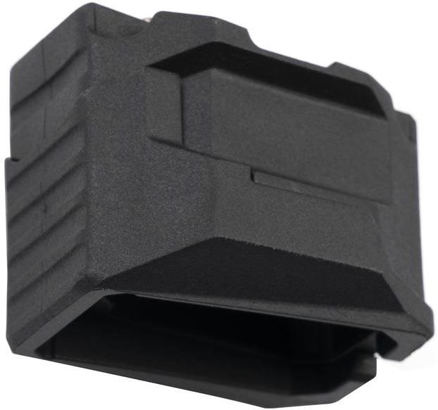 Chwyt przedni z innowacyjnym systemem modułowym. Pozwala on na rozbudowę i dostosowanie długości chwytu w zależności od potrzeb użytkownika. Opiera się on o wykorzystanie bazy do której można doczepić kolejne akcesoryjne moduły. Chwyt wraz z modułami został wykonany z autorskiego polimeru SI Extreme, cechującego wyjątkowo wysoką wytrzymałością. Chwyt przeznaczony jest do montażu na szynie Picatinny 1913. Montaż następuje przy pomocy dwóch śrub Torx. Wewnątrz chwytu znajduje się przestrzeń na poprowadzenie okablowania, na przykład od latarki na broń palną. Jest to element rozwiązania CMS - Cable Managment System®. Korpus jest teksturowany i posiada przetłoczenia, dzięki którym użytkownik może ergonomicznie oprzeć dłoń. Cechy Modularny chwyt przedni z rozwiązaniem CMS Cable Managment System® pozwala na schowanie nadmiaru kabli wewnątrz chwytu Teksturowanie i przetłoczenia dla lepszego chwytu Nachylenie pod kątem 86° Montaż w standardzie 1913 Picatinny Mocowanie na dwie śruby Torx T27 Chwyt wykonany z wytrzymałego polimeru SI Extreme splitter Dane techniczne Wymiary podstawy 43,7 x 43,9 x 35 mm Wymiary modułu rozszerzającego 48,6 x 39,7 x 30 mm Montaż Picatinny 1913 Kąt nachylenia 86° Materiał Polimer Waga podstawy 59 g Waga modułu rozszerzającego 30 g Kolor Czarny Elementy zestawu Część mocowana do szyny Picatinny Korpus modułu Stopka chwytu Dwie śruby Torx T27 Dwie nakrętki Klucz Torx T27 Klej do gwintów Loctite® Threadlocker Blue 243®