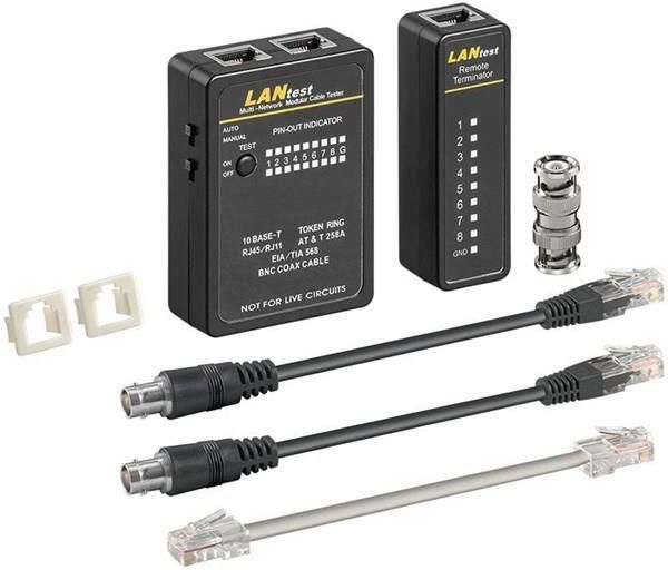 Zestaw do testowania kabli sieciowych Numer Katalogowy Produktu: RB93010 Opis Produktu do sprawdzania połączeń sieciowych CAT 5/6 i połączeń ISDN wyposażony w gniazdo RJ11, RJ12 i RJ45 w zestawie kable adaptera BNC > RJ45, RJ45 > RJ45 i wtyki BNC > BNC, RJ45 > RJ11 sprawdza przewody pod kątem ciągłości, zwarć, pomylonych żył i uszkodzeń kabli zdalne urządzenie z wbudowanym wyświetlaczem LED do sprawdzania 8 pojedynczych żył urządzenie zasilane baterią 9 V (do kupienia osobno) w zestawie twardy futerał Specyfikacja Produktu Waga: 195 g Szerokość: 80 mm Wysokość: 57 mm Kolor: Czarny Głębokość: 23 mm Znakowania: WEEE, CE Zużycie Jednostka: 1 szt, w blistrze Wersja kolorystyczna: Czarny Zakres językowy opakowania: de, en, fr, it Instrukcja obsługi: de, en, fr, it, es, nl, da, se, pl, cz