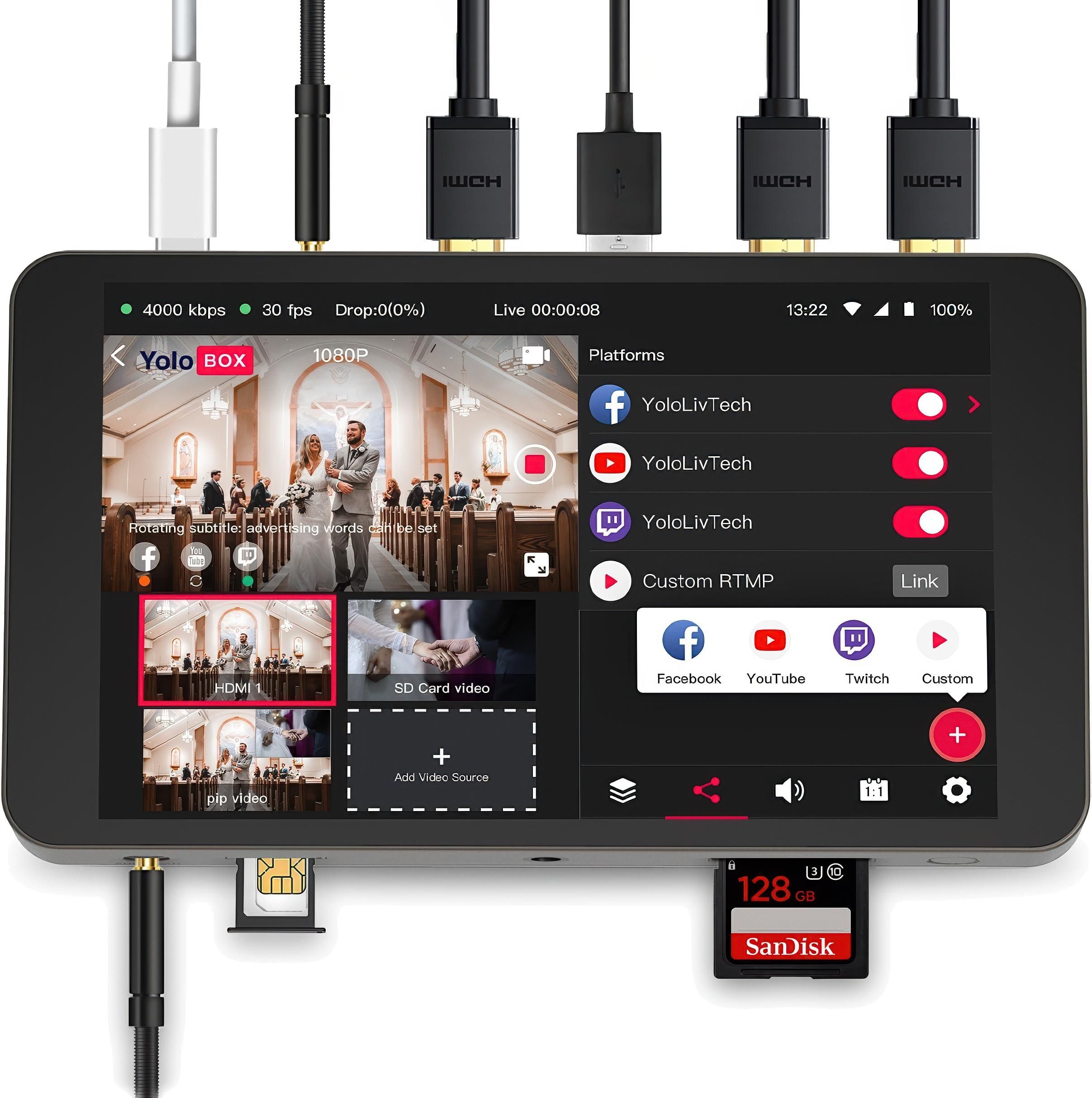 YoloLIV YoloBox to kompaktowe urządzenie które umożliwia bez laptopa udostępniać na żywo materiał filmowy, vlog, konferencję, spotkanie, instruktaż nawet przy użyciu do 5-ciu źródeł obrazu. Urządzenie może jednocześnie transmitować na 3 platformy, Facebook, Youtube, Twitch. Po prostu podłącz 5 …