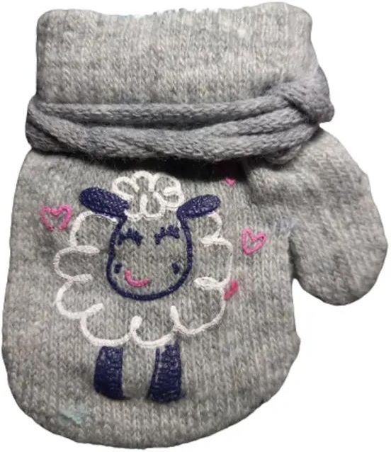Yo! Club Rękawiczki Dziewczęce Jednopalczaste Na Sznurku Owieczka Szare 14Cm 4-5 Lat Lubowidz