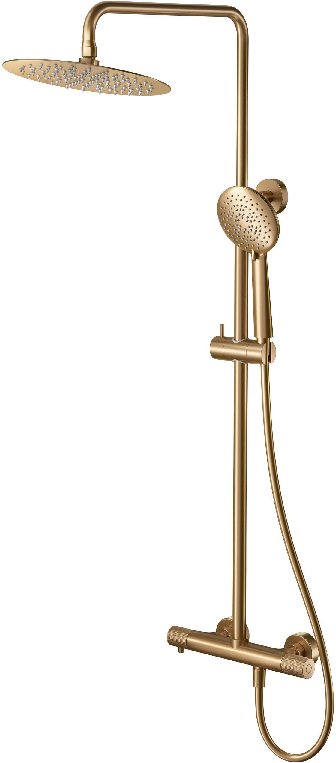 Kolumna Natryskowa ZEN z Termostatem Cersanit - Miedź Szczotkowana SKU: S951-790 Opis produktu✅ Kolumna natryskowa ZEN by Cersanit miedź szczotkowana to wyjątkowy element wyposażenia łazienki, który łączy nowoczesny design z innowacyjnymi technologiami poprawiającymi komfort użytkowania. Ta elegancka kolumna w wykończeniu miedzi szczotkowanej nie tylko wzbogaci wygląd Twojej łazienki, ale również zapewni luksusowe wrażenia podczas kąpieli. Zadbaj o swoje bezpieczeństwo i wygodę dzięki baterii termostatycznej, która umożliwia precyzyjną kontrolę temperatury wody. Głowica termostatyczna chroni przed nagłymi zmianami temperatury, co jest szczególnie ważne dla rodzin z dziećmi. Zastosowanie technologii SafeTouch dodatkowo chroni powierzchnię baterii przed nagrzewaniem, zapewniając bezpieczeństwo użytkowania. Wysokiej jakości materiały, takie jak mosiądz w korpusie baterii, gwarantują trwałość i odporność na korozję. Nowoczesna deszczownica SLIM o średnicy 25 cm, wykonana ze stali nierdzewnej, zapewnia szeroki i równomierny strumień wody, co pozwala na relaksującą kąpiel. Kolumna natryskowa jest także wyposażona w 5-funkcyjną słuchawkę prysznicową o średnicy 12 cm, wykonaną z materiału ABS, oferującą różnorodne tryby natrysku. Wąż w oplocie metalowym o długości 1,5 m zapewnia elastyczność i wygodę podczas użytkowania. Łatwość czyszczenia gwarantuje system EasyClean, który ułatwia utrzymanie armatury w idealnym stanie. Ergonomiczne, radełkowane uchwyty zapewniają nie tylko stylowy wygląd, ale również komfortową obsługę. Kolumna natryskowa ZEN by Cersanit to doskonały wybór dla osób ceniących sobie komfort, niezawodność i estetykę. Wybierz ZEN by Cersanit i wprowadź do swojej łazienki odrobinę luksusu w codziennym użytkowaniu. Najważniejsze cechy✅ Korpus baterii wykonany z mosiądzu: Trwałośći odporność na korozję. 5-funkcyjnasłuchawka prysznicowa o średnicy 12 cm z ABS: Różnorodnetryby natrysku dla maksymalnego komfortu. WążPVC 1,5 m: Elastyczność i wygoda użytkowania. DeszczownicaSLIM wykonana ze stali nierdzewnej 25 cm: Nowoczesnydesign i szeroki strumień wody. Głowicatermostatyczna: Precyzyjna regulacja temperatury. TechnologiaSafeTouch: Ochrona przed nagrzewaniem się powierzchnibaterii. SystemEasyClean: Łatwe czyszczenie i utrzymanie wczystości. Radełkowaneuchwyty: Stylowy wygląd i wygoda użytkowania Rysunek techniczny - sprawdź czy produkt pasuje do Twojego wnętrza Sprawdź galerię produktu