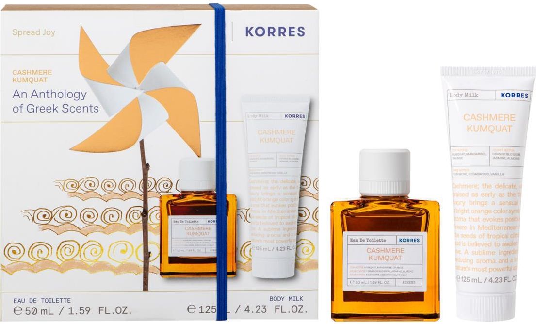 KORRES Zestaw Prezentowy Balsam & EDT - Cashmere Kumquat Zestaw Korres Cashmere Kumquat oferuje wyjątkowe doznanie świeżości i luksusu. To idealny zestaw prezentowy, który urozmaici Twoją codzienną pielęgnację skóry. W zestawie woda toaletowa 50 ml balsam do ciała 125 ml Woda toaletowa Cashmere …