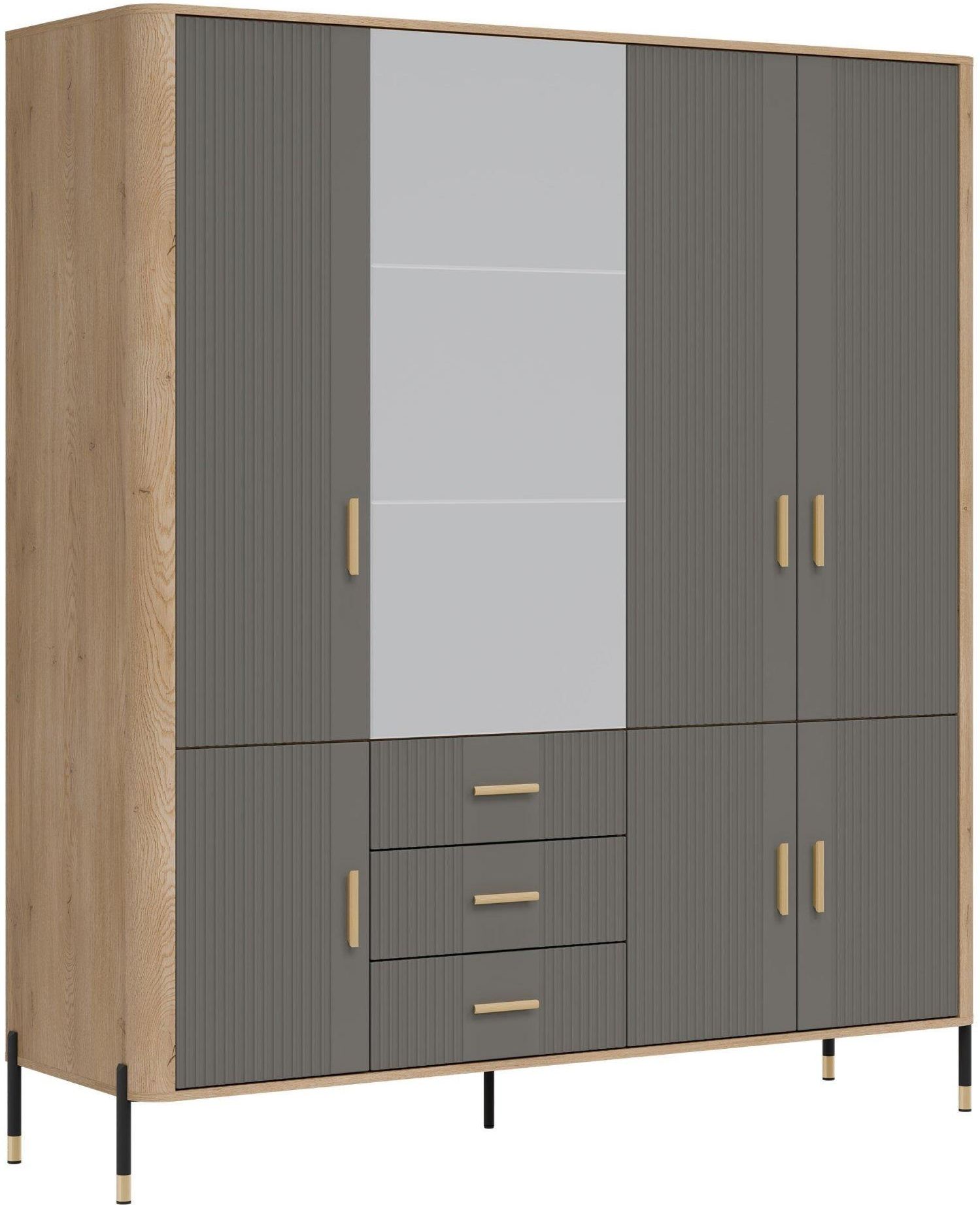 Liveo Szafa Uchylna Dante Dt17 7D3S Dąb Cremona Torro Szary Mat Z Lustrem Złoty Uchwyt Lubraniec