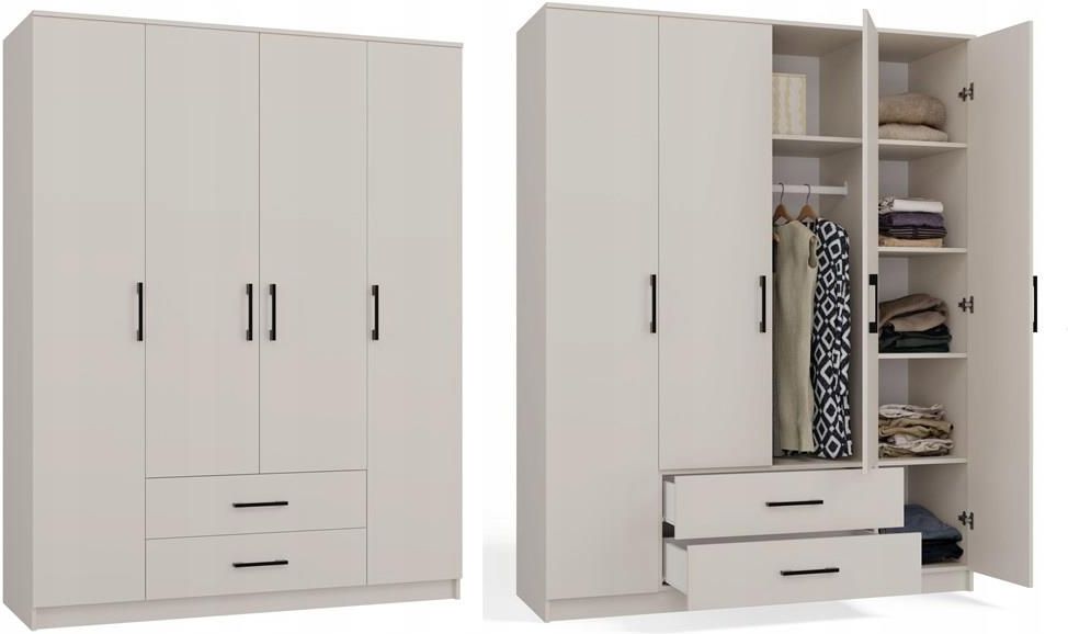 Topeshop Szafa Duża 160Cm Drążek Półki 2 Szuflady Kaszmir Beż Lubraniec