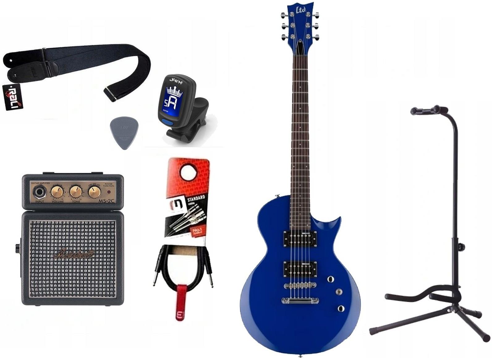 GITARA ELEKTRYCZNA + WZMACNIACZ 1 W KABEL ZESTAW LTD EC-10 KIT Blue Konstrukcja: Bolt-On Korpus: Lipa Gryf: Klon Podstrunnica: Hardwood 24 progi Mostek: TOM Bridge & Tailpiece Przetworniki: ESP LH-100 Potencjometry: Volume/ Tone Przełącznik: 3-pozycyjny Hardware: Black Nickel Kolor: Niebieski …