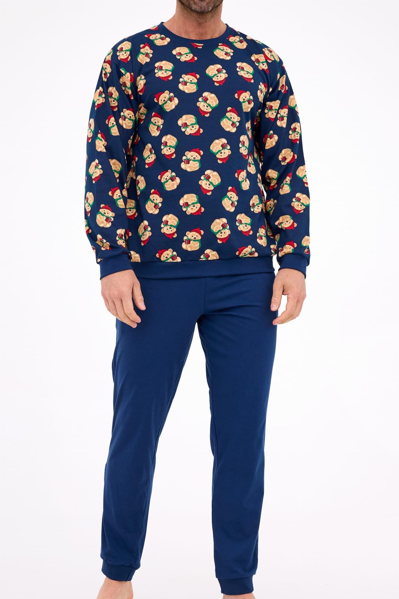 Świąteczna piżama męska z długim rękawem i z długimi spodniami marki Cornette model 457/293 "Teddy 6" w granatowym kolorze.