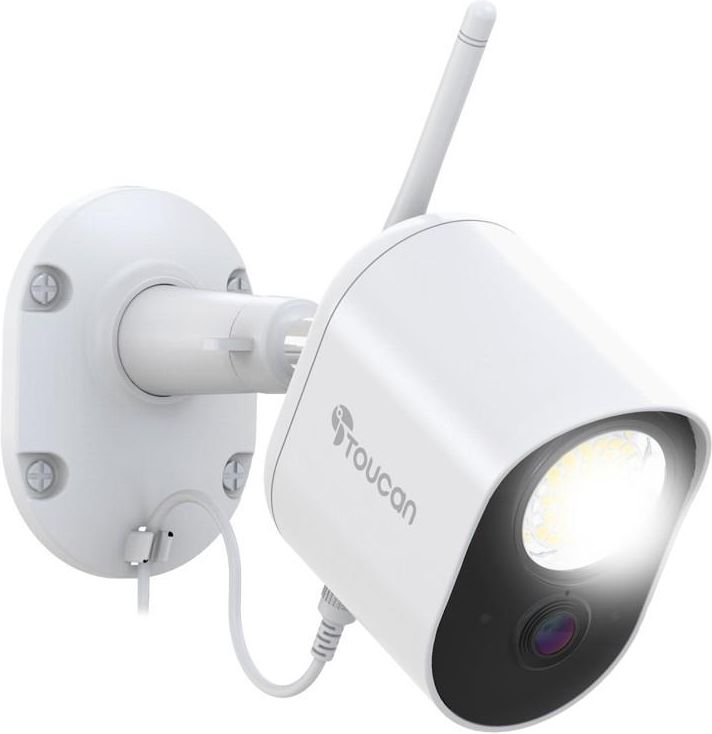 Security Light Camera w. Radarowa detekcja ruchu Kamera bezpieczeństwa Toucan z oświetleniem posiada wbudowany super jasny reflektor bezpieczeństwa o mocy 1200 lumenów oraz dokładną radarową detekcję ruchu. Zobacz wyraźnie, co dzieje się w Twoim domu dzięki szerokokątnemu obiektywowi, nagrywaniu w rozdzielczości 1080p Full HD i nocnemu widzeniu z krystalicznie czystym obrazem. Ponadto światło można włączyć ręcznie, gdy trzeba oświetlić dany obszar, zgodnie z harmonogramem lub po wykryciu ruchu. Możesz użyć dwukierunkowego połączenia do komunikacji z kamerą za pomocą aplikacji Toucan Smart Home, wstępnie nagranych autoresponderów, aby powiadomić kogoś, że obserwujesz, lub możesz nawet uruchomić syrenę 110dB i światło błyskowe z aplikacji. Dzięki dostosowywanym strefom wykrywania ruchu możesz ustawić kamerę bezpieczeństwa z oświetleniem tak, aby alarmowała Cię tylko wtedy, gdy wykryje ruch, a Ty chcesz alarmować tylko o ruchu. Przewodowa kamera bezpieczeństwa Toucan z oświetleniem może być łatwo zainstalowana w ciągu kilku minut i zasilana stałym prądem z dowolnego gniazdka elektrycznego. Wystarczy podłączyć kamerę do sieci Wi-Fi, zamontować ją, podłączyć i jest gotowa do pracy. Możesz również uzyskać dostęp do ostatnich 24 godzin nagranego materiału za darmo, lub wykupić abonament na dodatkowe przechowywanie w chmurze. Lokalizacja reflektorów: Kamera bezpieczeństwa Toucan Spotlight działa w sieci domowej Wi-Fi z Alexą i Google Home i posiada super jasne światło bezpieczeństwa o mocy 1200 lumenów z precyzyjnym radarowym czujnikiem wykrywania ruchu. Inteligentne zabezpieczenie domu: Kamera bezpieczeństwa z oświetleniem pozwala na 143-stopniowe pole widzenia z krystalicznie czystym obrazem wszystkiego, co dzieje się w Twoim domu w dzień lub w nocy - dzięki szerokokątnemu obiektywowi 1080p Full HD i nagrywaniu 24/7 za pomocą bezpłatnej aplikacji Toucan. Cechy: Kamera wyposażona jest w syrenę alarmową o mocy 110dB i dwukierunkowy głośnik, posiada klasę odporności na warunki atmosferyczne IP56 oraz kompaktową konstrukcję umożliwiającą szybki i łatwy montaż. Zasilany jest z gniazdka elektrycznego poprzez 6m kabel zasilający odporny na warunki atmosferyczne. UWAGA - Z TUKANEM NIE JEST WYMAGANY ABONAMENT! Kamery Toucan oferują bezpieczne, szyfrowane przechowywanie w chmurze, które chroni Twoją prywatność przez całą dobę i nie wymagają subskrypcji do przeglądania lub przechowywania. Oglądaj obraz na żywo bezpośrednio w aplikacji Toucan Home Security na smartfony, odtwarzaj zdarzenia i pobieraj nagrania ze zdarzeń. Aby uzyskać więcej informacji na temat taryf Toucan, kliknij tutaj Zawartość opakowania: 1× kamera bezpieczeństwa z oświetleniem1×6m wodoodporny kabel zasilający (dostępny również kabel przedłużający, sprzedawany oddzielnie) Dane techniczne Typ baterii: Wbudowana bateria litowo-jonowaKolor: BiałyPole widzenia (kąt) (°): 143Przewodowe/bezprzewodowe: PrzewodoweTyp transmisji bezprzewodowej: WiFiKompatybilność z innymi: Google Home, AlexaStacja bazowa: : WbudowanaJasność (Lumen): 1200Integrated Spotlight: TakWykrywanie ruchu: radarStrumienie jednoczesne: 1Decybel syreny: 100