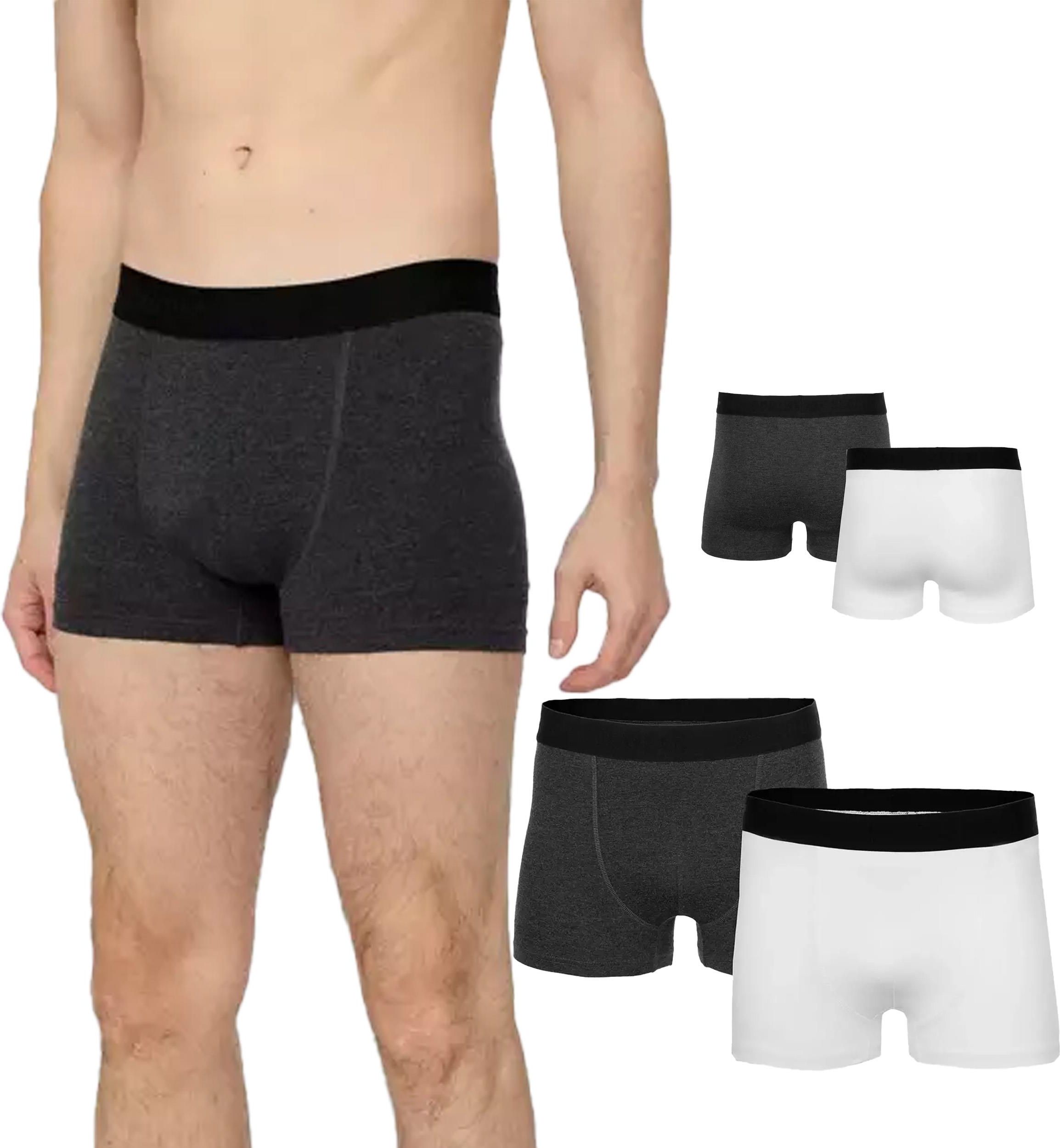 Bokserki męskie 4F 2szt białe i szare SInformacje o produkcie: bokserki męskie marki 4F dwie pary bokserek wyposażone w elastyczną taśmę w pasie wykonane z wysokiej jakości, przyjaznych dla skóry materiałów dodatkowa warstwa materiału na przodzie zapobiega prześwitywaniu idealnie przylegające, zapewnią komfort, idealne na każdy dzień kolor: biały, szary Materiał: bawełna 4F