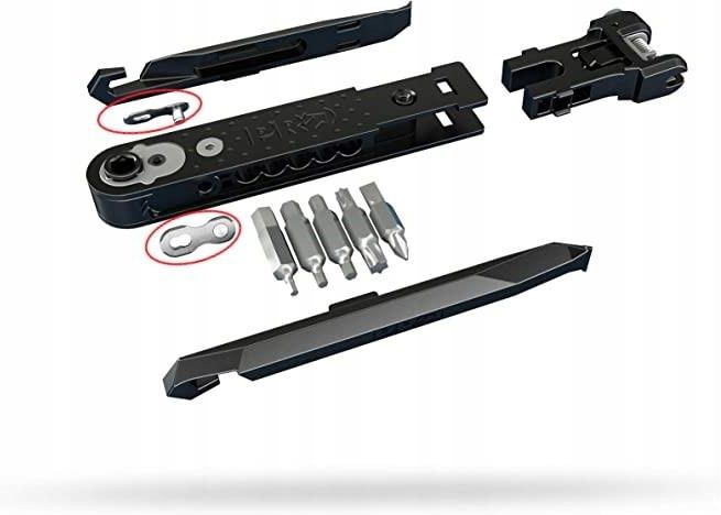 Minitool PRO klucz wielofunkcyjny 13 Funkcji Pro Zintegrowane narzędzie PRO to 13-funkcyjne mini narzędzie z grzechotką, które można przechowywać pod siodełkiem PRO. Zaprojektowane do sportowej jazdy zintegrowane mini narzędzie PRO można wygodnie przechowywać pod siodełkiem PRO. Ma 13 funkcji i grzechotkę, do której mocuje się dwustronne końcówki imbusowe i Torx. Oprócz pięciu końcówek narzędzie zawiera także skuwacz do łańcucha, dwie łyżki do opon i miejsce na spinkę łańcucha. Przeznaczone do mocowania do siodełek PRO 13-funkcyjne mini narzędzie Wyposażone w grzechotkę Końcówki imbusowe: 2, 2,5, 3, 4, 5 i 6 mm Końcówki Torx: T25 i T30 Wkrętaki: płaski i krzyżakowy Dwie łyżki do opon Skuwacz do łańcucha Miejsce do przechowywania spinki łańcucha