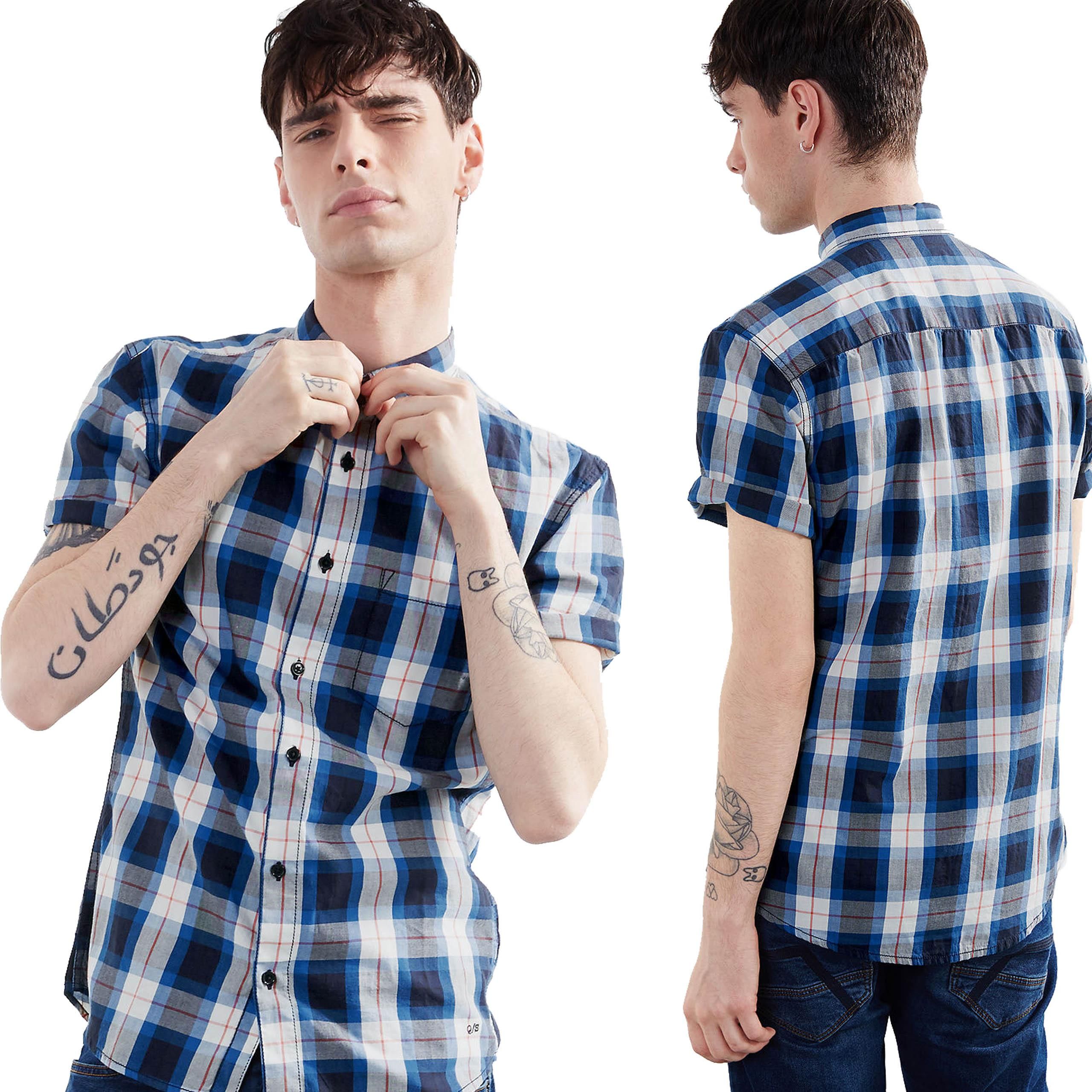Koszula męska kr. rękaw s.Oliver niebieska krata regular - S Lwówek Śląski