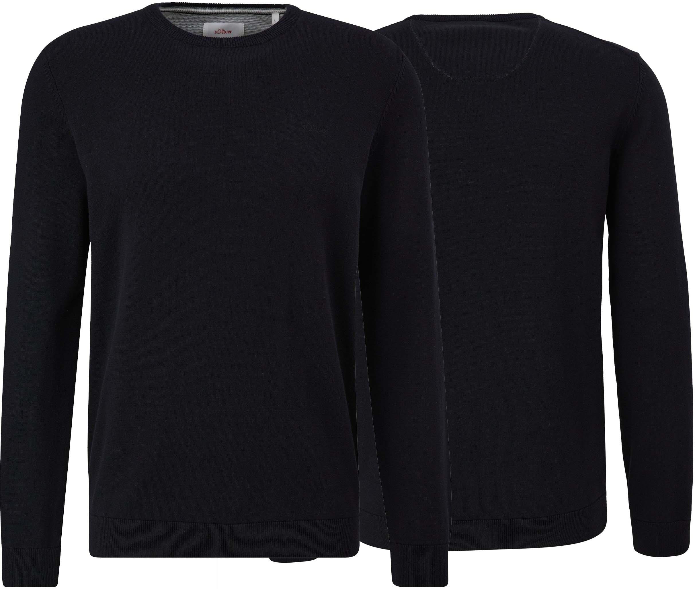 Sweter męski s.Oliver czarny - XXLInformacje o produkcie: Sweter męski s.Oliver kolor: czarny dekolt okrągły z prążkowaną lamówką obszycia prążkowane logo Dopasowanie: Regular Fit Materiał: 100% bawełna