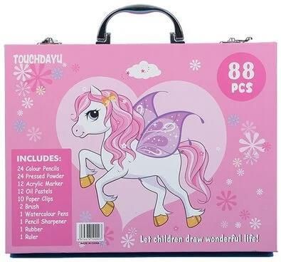 Zestaw artystyczny do malowania, w walizce, 88 elementów Czy zastanawiałeś/aś się kiedyś, jak najlepiej wspierać naturalną potrzebę Twojego malucha do tworzenia? Przedstawiamy zestaw artystyczny do malowania w walizce, który oferuje wszystko, czego potrzeba do rozwijania artystycznych pasji. Dzięki 88 elementom i praktycznej formie ten zestaw sprawia, że rysowanie i malowanie staje się prawdziwą przyjemnością, zarówno dla małych artystów, jak i ich rodziców. To kompleksowe narzędzie do wyrażania emocji i odkrywania talentów.