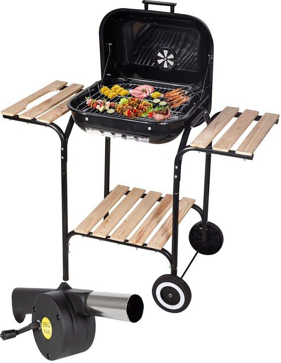 Nowoczesny design Dopasowany do każdego otoczenia Czarna powierzchnia w połączeniu z srebrnymi elementami, sprawia, że sprzęt cieszy nie tylko podniebienie, a również i oko. Dzięki temu połączeniu grill posiada nowoczesny, oryginalny wygląd i pasuje nawet do najbardziej wymagającego otoczenia. Czas rozpocząć sezon grillowy w świetnym stylu! Grill ogrodowy z dużym rusztem głównym to idealne rozwiązanie dla miłośników przygotowywania posiłków na zewnątrz! To także propozycja dla tych, którzy cenią sobie solidną jakość wykonania oraz atrakcyjny design. Zamontowane półki Wszystko na swoim miejscu Przy grillu zamontowano aż trzy półki (dolna i 2x boczna), które pozwolą nam na trzymanie jedzenia, przypraw, naczyń i potrzebnych akcesoriów w jednym miejscu, blisko siebie. Zastosowane rozwiązanie znacznie ogranicza potrzebę ciągłego odchodzenia od paleniska i przynoszenia niezbędnych rzeczy. Pokrywa z uchwytem i przesłonami Największą sztuką grilowania jest utrzymanie odpowiedniej temperatury. Nie może być ona za niska, ani za wysoka. Z naszym grillem to nic prostszego. Pokrywa z systemem kanałów wentylacyjnych pozwoli w pełni kontrolować i utrzymywać pożądaną temperaturę. Zastosowanie w grillu pokrywy ma wiele właściwości, m.in.: skraca czas przyrządzania potraw węgiel nie zapala się dużym płomieniem chroni palenisko przed dziećmi i zwierzętami umożliwia grillowanie nawet przy niesprzyjającej pogodzie utrzymuje temperaturę Na pokrywie znajduje się uchwyt, który umożliwia otwieranie jej bez obawy o oparzenie. Wywietrzniki pozwalają na dopasowanie temperatury wewnątrz grilla do własnych potrzeb. Uchwyty do podnoszenia rusztu Do rusztu dołączone są dwa chromowane uchwyty, które ułatwią podnoszenie całego rusztu. Wygodnie chwycisz za nie aby odstawisz na chwilę ruszt w celu dosypania węgla! Stabilna konstrukcja i przyjemne przemieszczanie Bezpieczeństwo dla Ciebie i Twoich bliskich Grill został wykonany z najwyższej jakości materiałów i zaprojektowany w taki sposób, by był bezpieczny i stabilny. Nie musimy obawiać się o to, że może się przewrócić podczas użytkowania.