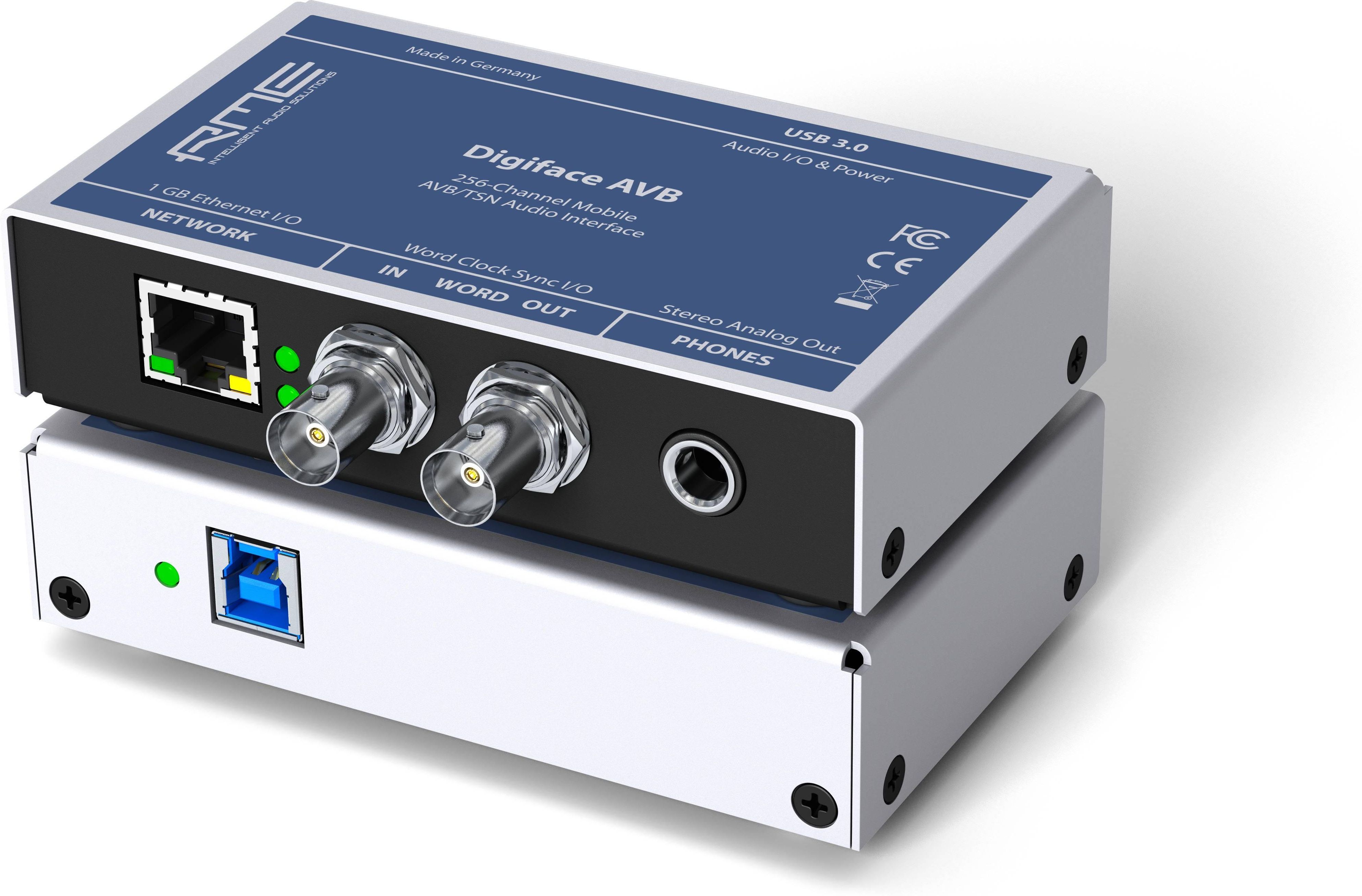 RME Digiface AVB | Interfejs audio USB 3.0, 128x128, Gigabit Ethernet zgodny z 802.3, AVB IEEE 802.1 BA RME Digiface AVB to typ interfejsu audio USB 3.0 AVB, który mimo niewielkiej wagi i gabarytów potrafi przekazać aż 128 kanałów wejścia i wyjścia. Posiada Gigabit Ethernet zgodny z 802.3, stos …