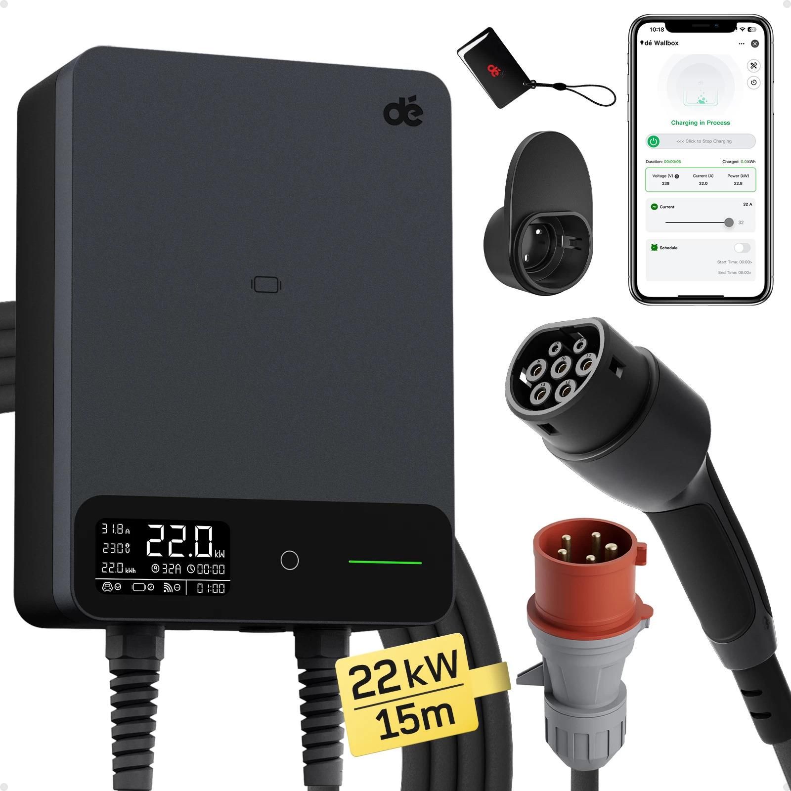 Stacjonarna ładowarka wallbox dé EV 22kW Typ 2 na siłę 15m Lwówek