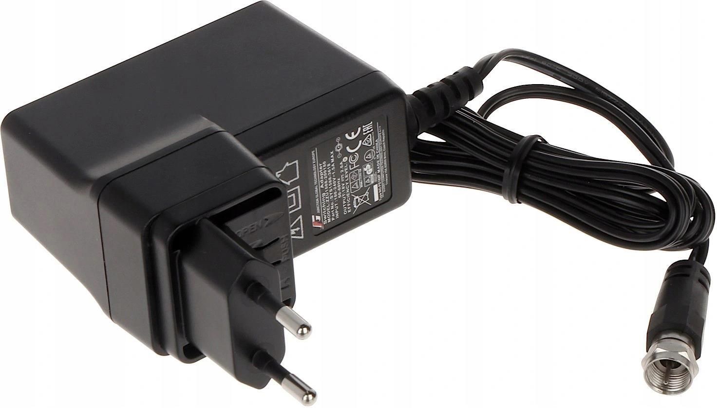 Zasilacz PS182F 18V 2A do multiswitchy Terra Kod towaru: PS-182F Zasilacz przeznaczony jest do multiswitchy firmy Terra serii MS/MV/MSV, wyposażony w złącze F. Napięcie wyjściowe: DC 18 V. Wyjście: wtyk F, "+" zasilania znajduje się na żyle przewodu. Wydajność prądowa: 2 A. Napięcie wejściowe: 180 …