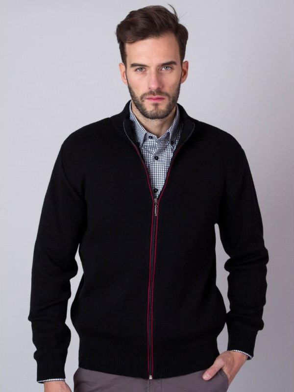 Sweter męski rozpinany Kolor: czarny Plisa i łaty: czerwone Skład: 50% bawełna, 50% akryl Jakość: pierwsza Gwarancja: 24 m-ce Uszyty w Polsce