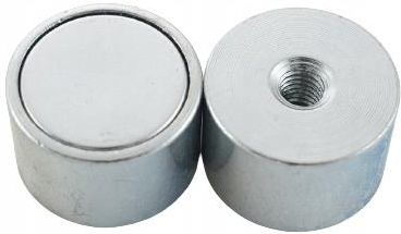 Aukcja dotyczy 10kompletów uchwytu magnetycznego neodymowego UM 20x13 M5 z haczykiem M5. Wymiary uchwytu magnetycznego: Średnica Uchwytu: 20 [mm] Wysokość Uchwytu: 13 [mm] Gwint: M5 Parametry magnesu: W uchwycie został wykorzystany magnes: Neodymowy Powłoka: Cynk (Zn) Waga uchwytu: ~ 29,40 g Udźwig Magnesu: ~ 13,0 kg* Maksymalna temperatura pracy: 80° C *Udźwig magnesów jest podawany dla warunków testowych - Udźwig mierzono statycznie, na oderwanie w pionie z wykorzystaniem stali (S355 J2G3) grubości 10 mm o gładkiej powierzchni. Parametry haczyka: Gwint: M5 Powłoka: Cynk (Zn) Długość Gwintu: 6 [mm] Długość całkowita: 32,8 [mm] Magnes, dzięki bardzo silnemu połączeniu, jest trwale umiejscowiony w obudowie uchwytu. Dodatkowym atutem połączenia magnesu i stalowej obudowy, jest układ magnetyczny, który zwiększa siłę udźwigu uchwytu. Układ magnetyczny zwiększa siłę przyciągania, lecz zmniejsza zasięg magnesu, aby wykorzystać pełen potencjał uchwytów magnetycznych należy je stosować bezpośrednio do metalu. W przypadku zapotrzebowania na magnesy o przeciwnej polaryzacji ( "pary" magnesów ) prosimy o adnotacje w informacji Uwaga: Na udźwig magnesu ma wpływ wiele czynników, takich jak: materiał ferromagnetyka, odległość od, temperatura otoczenia, kierunek działania sił. Zalecamy testowanie magnesów w konkretnych warunkach.