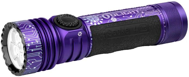 Latarka taktyczno-poszukiwawcza Olight Seeker 4 Pro Cool White Cyber Violet - 4600 lumenów (Seeker 4 Pro (Cyber Violet)) + gratis: torba Militaria Maksymalny strumień światła: 4600 lumenów Wiązka światła: regulowana Tryby świecenia: Tak Czas pracy w trybie maksymalnym: 2,5 min Czas pracy w trybie …